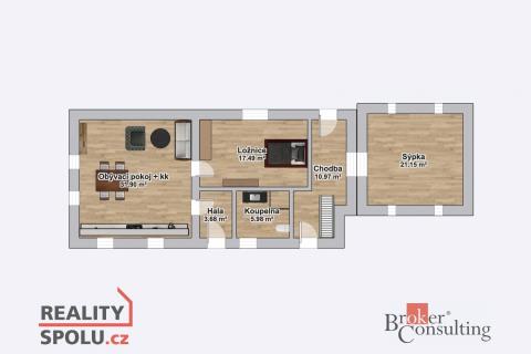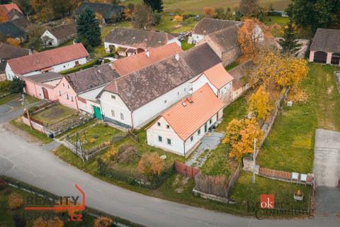 Na prodej rodinný dům po loňské kompletní rekonstrukci obytné části souboru budov, zbývá dodělat pouze venkovní fasádu domu. V současné chvíli je obyvatelná část s dispozicí 2+kk o užitné ploše cca 70 m2, s tím, že je možno vybudovat obytné podkroví, či zrekonstruovat k domu přiléhající historickou sýpku. která nese nádech středověké historie, není však památkově chráněná a tak nabízí široké množství využití od komerčního nápadu až po útulnou hvězdárnu. Na celé stavbě, včetně sýpky, je položena nová střešní krytina v podobě pálené tašky. V celém domě se nachází elektrické podlahové topení a ve světnici jsou kamna na dřevo. Zadní, hospodářskou část za sýpkou je možné předělat podle svých představ, díky oddělenému vstupu nabízí možnost dvougeneračního bydlení či ponechat prostor jako prostornou garáž případně kutilskou dílnu. Vedle domu se nachází funkční sklípek.
