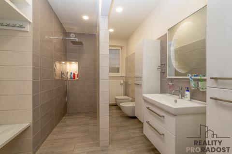 Během rekonstrukce v roce 2005 bylo instalováno plynové topení s radiátory, zajišťující efektivní a komfortní teplo v domě. Ohřev vody je řešen bojlerem. Kotel i bojler jsou šikovně umístěny ve sklepních prostorách, takže nikde nezavazí a nehyzdí obytné prostory. Zároveň bylo provedeno důkladné odizolování domu a statické zajištění celé budovy, což zaručuje její dlouhodobou stabilitu a životnost.