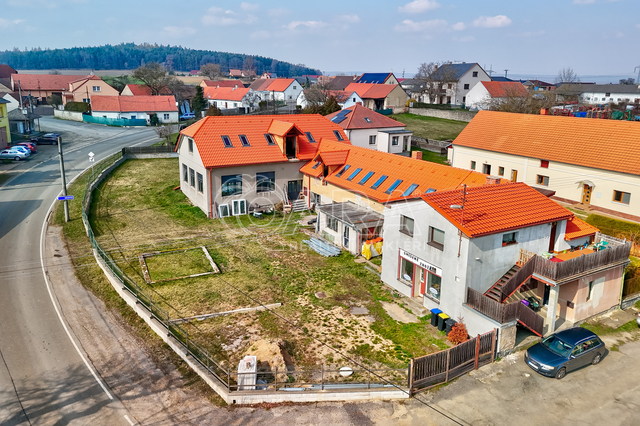 V exkluzivním zastoupení majitele Vám nabízíme prodej částečně rekonstruované bývalé multifunkční budovy v obci Drhovy u Dobříše. Podle platného stavebního povolení probíhají stavební úpravy objektu na rodinný dům o třech bytových jednotkách v přízemí s půdními prostory a se zahradou. Dům je napojen na veškeré sítě v obci (elektřina 220/380 V, vodovod, kanalizace), navíc jsou na pozemku k užívání dvě studny. V současné době byl již dokončen a zkolaudován největší z bytů o dispozicích 4+kk a celkové ploše 164,15 m2 (v půdorysu označený jako Byt 1). Vytápění tohoto bytu je zajištěno tepelným čerpadlem (ÚT). Zbývající prostory v přízemí jsou v původním stavu určené k dokončení, navržené byty budou mít dispozice 3+kk (95,35 m2) a 2+1 (80,3 m2). Všechny byty budou mít samostatný vchod a samostatné odpočty měřidel. Plánovaný způsob vytápění – 2x samostatný elektrokotel (ÚT). Nad Bytem 3 je aktuálně v 2. NP vybudováno zázemí pro správce – je přivedena elektřina, vybudována koupelna a místnosti, vytápěno elektrokotlem, vše o celkové ploše 60,8 m2. Půdní prostory nad všemi byty lze využívat jako společné prostory, popř. lze drobnými úpravami prostory rozdělit k užívání pro jednotlivé byty, a to jako půdu nebo jako potenciál pro zvětšení bytů formou mezonetového bydlení. Na objektu je nová střecha s vikýři, v dokončeném bytě jsou instalována nová okna (izolační trojskla) a vstupní vchodové dveře. Vybavenost obce – OÚ, MŠ, autobus. spojení – Dobříš – Drhovy – Županovice; veškeré další služby v nedaleké Dobříši (7 km), Praha 45 km po Strakonické D4. Po zakoupení této nemovitosti můžete již užívat byt i zahradu a zbývající prostory využít podle Vašich představ – k dokončení bytů a jejich zhodnocení, popř. pro podnikání, k pronájmu apod. Uvedené výměry jsou orientační, průkaz energetické náročnosti budovy (PENB) bude po dodání aktualizován. Součástí fotodokumentace jsou také vizualizace možného vybavení. Pro další informace volejte nebo pište na níže uvedené kontakty.