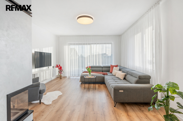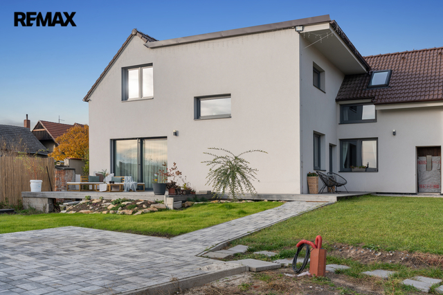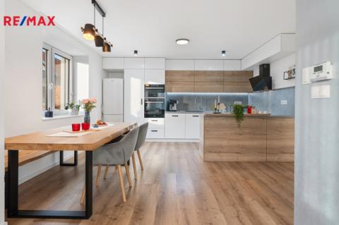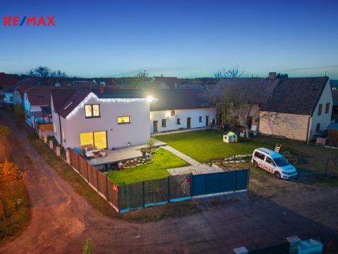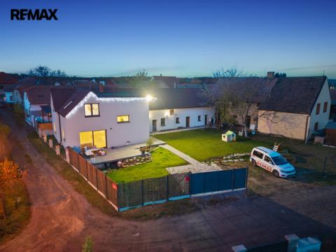 Dům je po kompletní rekonstrukci probíhající v letech 2020–2022 – přes 300 m² obytné plochy, která dýchá prostorem a útulností.