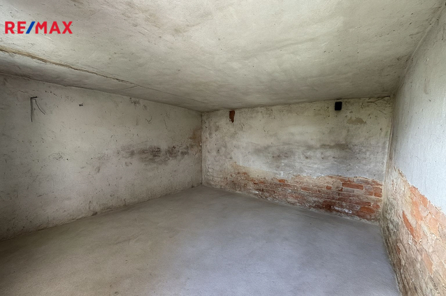 K domu náleží i technické místnosti v suterénu, které lze využít jako dílnu, sklad nebo zázemí pro podnikání.
