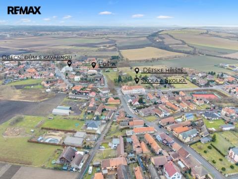 Dům stojí na vlastním pozemku o velikosti 736 m², v klidné části obce, bez provozu.