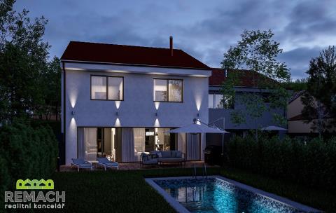 Prostorný dům o dispozici 4+kk je umístěn na pozemku o velikosti 526 m² a je koncipován tak, aby poskytoval dostatek prostoru pro celou rodinu. Cihlová konstrukce v kombinaci s energetickou náročností třídy A znamená nejen kvalitní izolaci, ale i úsporu na provozních nákladech. Teplo domova si zajistíte krbovou vložkou s výkonem cca 8 kW nebo elektrickým podlahovým topením s regulací BMR s využitím fotovoltaických panelů o výkonu 11,3 kWp a bateriového úložiště s kapacitou 11,3 kWh. K vytápění a chlazení dále poslouží klimatizace, která se nachází ve všech pokojích orientovaných na jih, tedy: obývací pokoj, ložnice a dva dětské pokoje.