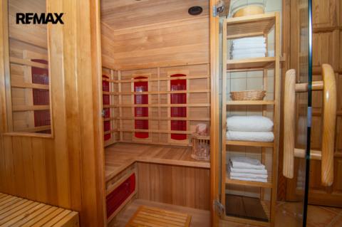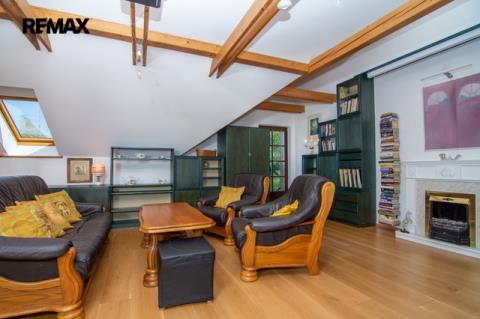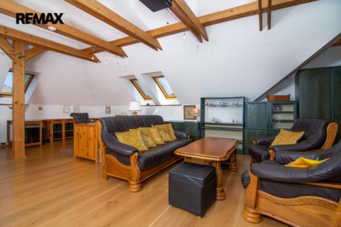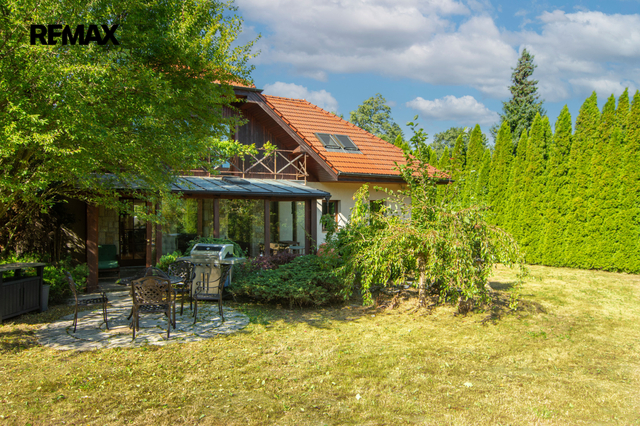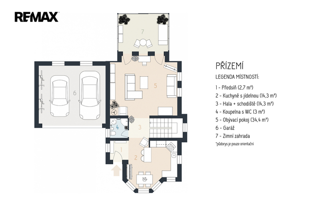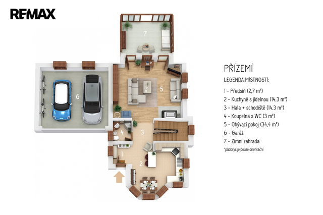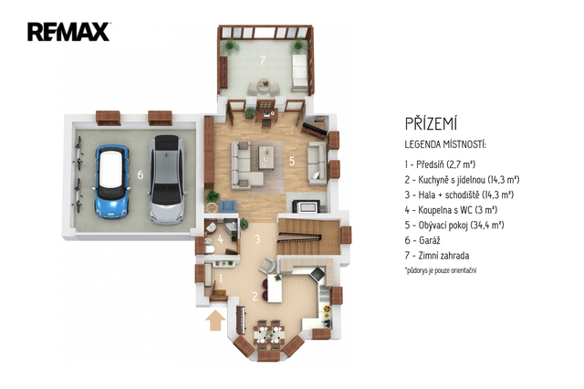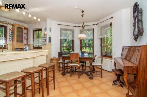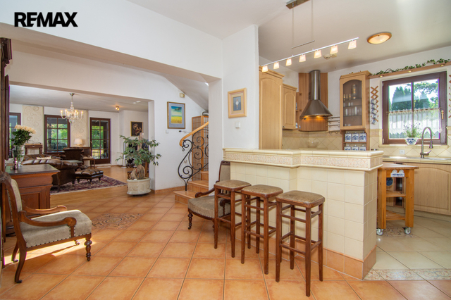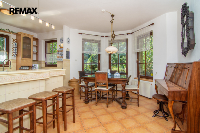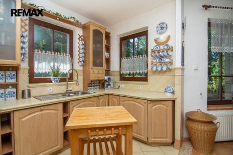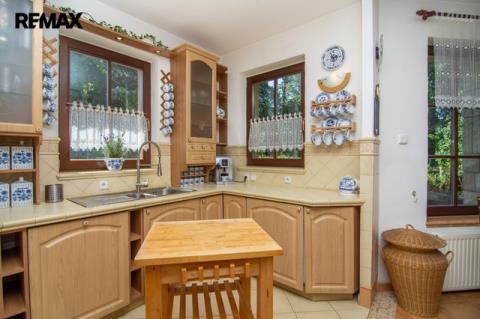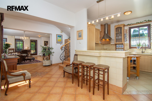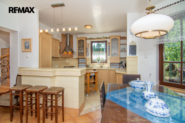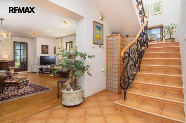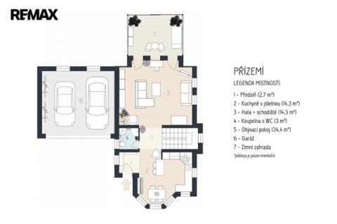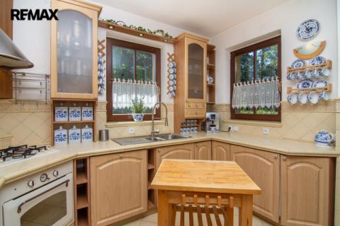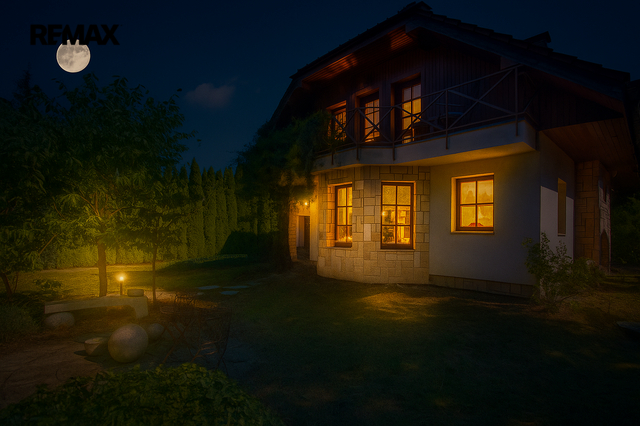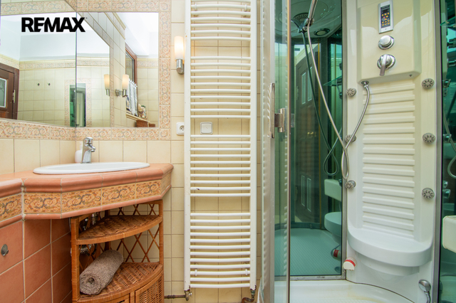 Dům má celkovou zastavěnou plocha 156 m² a nabídne ideální prostory pro rodinné bydlení. Promyšlené dispoziční řešení a dostatek prostoru umožňují možnost vytvořit samostatnou bytovou jednotku, což je skvělá příležitost k pronájmu a zajímavému pasivnímu příjmu. Interiér je kompletně vybaven a nabízí přízemní kuchyň s jídelním koutem (14,3 m2) a prostorný obývací pokoj (34,4 m2) s krbem a přímým vstupem do zimní zahrady, ideálního prostoru pro celoroční relaxaci. V přízemí najdete také koupelnu s parním sprchovým boxem, WC a bidetem (3 m2).