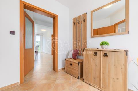 Dům jako takový poskytne užitnou plochu o necelých 120 m2 a je součástí řadového rodinného bloku, poskytne 5 obytných pokojů, dvě koupelny, prostorný obývací pokoj s kuchyní a jídelnou, technické komory a spíž. Vzdušný obývací pokoj vám skvěle doplní přímý vstup na zastřešenou terasu o výměře 14,5 m2, ideální pro posezení a grilování. Naopak na druhé straně domu budete mít z kuchyně vstup na menší zahradu za domem, kde budete mít ideální klidné prostředí na váš relax, na opalování nebo odpočinek třeba na houpačce. Jako poslední k praktičnosti domu napomůže vlastní přístřešek na auta a zahradní domek/skladovací místnost skvělá na uložení vašeho sportovního vybavení a nebo zahradní techniky. Pro další parkování je možné přikoupit ještě jedno vyhrazené parkovací stání před domem.