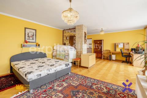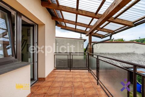 V patře jsou další dva pokoje a kuchyň. Prostor pro rodinu s dospělými dětmi, hosty nebo pro vybudování samostatné bytové jednotky. Jeden z pokojů má balkon, z chodby je vstup na zastřešenou terasu s výhledem do zahrady.