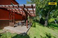 Nabízíme exkluzivně zděný RD po částečné rekonstrukci v malebné obci pod Oderskými vrchy, ve Vlkovicích u Fulneku. Tento zděný dům je koncipován jako samostatná část dvojdomku s vlastním vchodem, vlastním číslem popisným a vlastní samostatnou zahradou. V 1.NP se nachází vstupní veranda s chodbou a schodištěm do patra, komora, kotelna, dvě samostatné garáže a zastřešená terasa do dvora. Ve 2.NP je nad schodištěm menší hala s úložným prostorem, chodba, koupelna, WC, 3 ložnice a obývací pokoj propojen s kuchyňským koutem. Ze dvou pokojů lze vystoupit na prostorný balkón. Dům prošel před léty postupnou rekonstrukcí kdy byla vyměněná okna za plastová, nové vnitřní dveře ve 2.NP, 5 let stará kuchyňská linka, kotel na tuhá paliva je vyměněn za tepelné čerpadlo voda - vzduch zn. Wiessmann které zajišťuje vedle vytápění i ohřev teplé vody. El. je v původním stavu, rozvody vody a odpady jsou v plastu. Podlahy železobetonové konstrukce s dřevěnou krytinou, s linem, tkanou textilií a keramickou dlažbou. Pultová střecha domu je oplechovaná a pravidelně ošetřena nátěrem, dům je částečně opatřen zateplením a brizolitová omítka má nový nátěr. Na zahradě stojí skleník, k domu je napojena dřevěná zastřešená pergola pro zpříjemnění odpočinku. Voda je do domu napojena z dálkového vodovodu, voda k WC a zalévání zahrady je zajištěna ze studny na vlastním pozemku. Odpady jsou svedeny do vlastní čističky s odvodem upravené vody do místní vodoteče. PENB - energetický štítek domu se v současné době zpracovává, proto systém uvádí nejhorší třídu "G". Pro bližší informace volejte makléři. Do konce prosince 2025 nabízíme prostřednictvím našeho partnera úrokové sazby od 4,29 % p.a. Více informací Vám sdělí náš specialista na prohlídce.