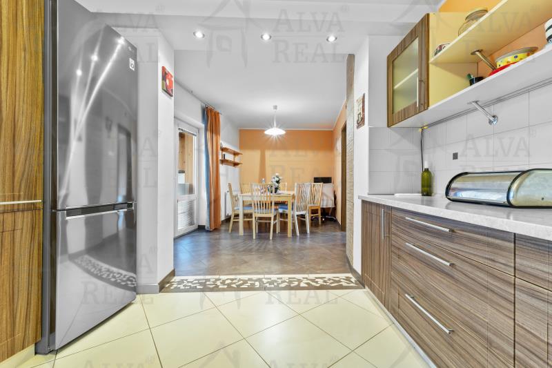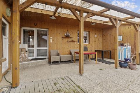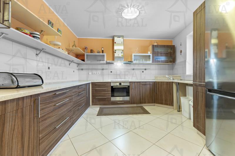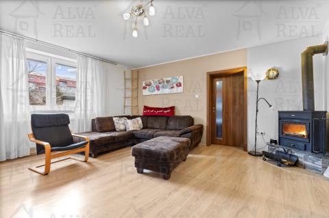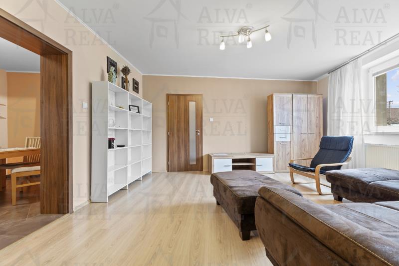 Vybavení: Kuchyňská linka včetně spotřebičů (el. trouba zn. Bosch, sklokeramická varná deska, digestoř Bosch, lednice LG), jídelna s dřevěným jídelním stolem a židlemi. V obývacím pokoji gauč s taburetem, obývací stěna. Ložnice vybavena manželskou postelí a šatní skříní. Prostorná koupelna s vanou i sprchovým koutem, koupelnový nábytek.