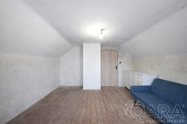 Nabízíme k prodeji rodinný dům nacházející se v obci Skůry - Křovice. Dům je ideální pro ty, kteří hledají klidné bydlení s praktickým uspořádáním, efektivním vytápěním a dostatkem venkovního prostoru. V přízemí (1. NP) o celkové výměře 68 m² se nachází bytová jednotka o dispozici 2+1, která zahrnuje koupelnu vybavenou vanou a pračkou. Toaleta je umístěna samostatně. Dům je rovněž částečně podsklepený, přičemž sklep má výměru 8,3 m². Vytápění je řešeno krbem s rozvodem tepla do radiátorů a termostatem, což zajišťuje příjemné teplo v celém domě. V patře (2. NP) o výměře 25,5 m² se nachází další 1 pokoj a praktický úložný prostor. Ohřev vody zajišťuje bojler (elektro), jehož instalace proběhla v roce 2025. Odpad je řešen jímkou o kapacitě 8 kubíků. K nemovitosti náleží také velká zahrada a praktická kůlna. Nemovitost je ve stavu: K rekonstrukci Obec Křovice - Skůry (část obce Hobšovice, okres Kladno) nabízí klidné venkovské bydlení s dobrou dostupností okolních měst. Město Slaný je vzdálené přibližně 10 minut jízdy autem, Velvary cca 7 minut jízdy. Nájezd na dálnici D7 (směr Praha/Chomutov) je dostupný přibližně do 3 - 4 minut jízdy autem, což zajišťuje pohodlné spojení s hlavním městem i širším okolím. Kompletní občanská vybavenost – školy, školky, lékaři, obchody, restaurace i další služby – je k dispozici zejména ve Slaném, případně ve Velvarech.