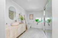 V patře: Zde se nachází klidová zóna s velkou ložnicí, dětským pokojem, prostornou kanceláří a druhou, hlavní koupelnou.