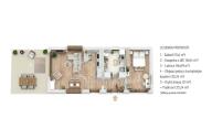 V přízemí: Z prostorné haly se dostanete do obývacího pokoje s kuchyňským koutem, koupelny, prádelny a pokoje pro hosty. Nechybí zde ani praktická úklidová místnost.