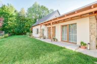 Exteriér: Zahrada s krásnou pergolou a výhledem do lesa je stvořena pro odpočinek. Parkování pro čtyři auta je zajištěno. Velký bonus: Pozemek o rozloze 1280 m² umožňuje jeho zastavitelnost pro budoucí rozšíření domu o další pokoje!