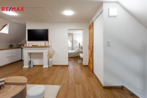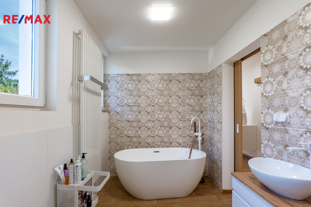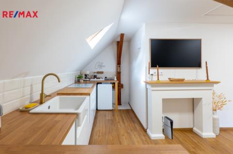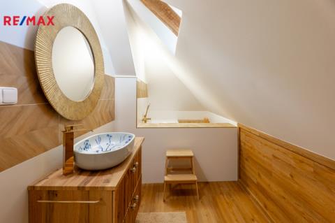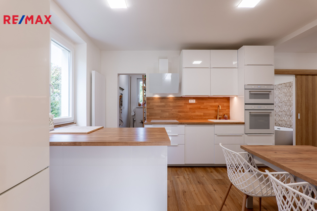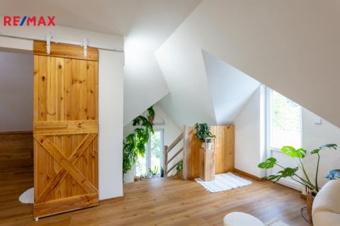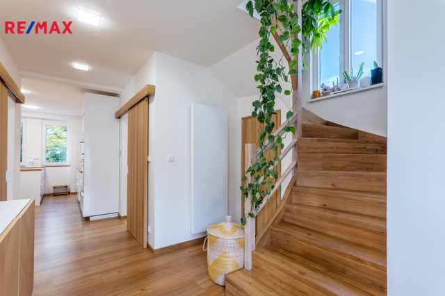 Stylová prvorepubliková vila s možností podnikání – Hořovice Nabízíme prvorepublikovou vilu z roku 1938 po velmi citlivé designové rekonstrukci interiéru. Dům se nachází v klidné ulici Na Hořičkách v Hořovicích a nabízí celkovou podlahovou plochu 169 m², dispozici 2+1 a 2+kk + samostatný prostor pro podnikání (nyní kadeřnický salon) se samostatným vstupem. Prostorná zahrada se vzrostlými stromy o výměře 555 m2 Dispozice domu: Suterén (43 m²): prostor pro podnikání s technickým zázemím. Vhodné i pro zřízení další bytové jednotky (garsonky). 1. NP (70 m² vč. verandy): obývací pokoj se vstupem na zahradu, kuchyně IKEA se spíží (pracovní deska v dekoru zlatý dub, dvířka bílý lesk, spotřebiče IKEA – trouba, mikrovlnná trouba, digestoř, indukční deska, myčka, osvětlení), malý pokojík se vstupem na terasu, koupelna s výhledem do zeleně. Na podlahách vinyl Aquafix Click (RCB deska se silnými zámky, voděodolný, odolný proti poškrábání, akustická podložka 18 dB, certifikát Greenguard), v koupelně a v suterénu dlažba, na stěnách nové sádrové omítky. Podkroví (57 m²): jednotka 2+kk s koupelnou a balkonem. Výklopná dvířka se schůdky na půdu. Technické informace: Okna plastová s trojskly, na francouzských oknech v 1. NP předokenní elektrické žaluzie. Vytápění kvalitním plynovým kotlem Protherm (stáří 1,5 roku). Kompletně nové rozvody elektřiny, vody a odpadů (stáří 1,5 roku) včetně nové přípojky. Zateplení podlah, stropů i půdy. Dřevěný krov ve velmi dobrém stavu, střešní krytina kanadský šindel (stáří cca 20 let). Inženýrské sítě: elektřina, vodovod (nová přípojka), kanalizace, plyn v kapličce na hranici pozemku. Zahrada o výměře 555 m² s mírným sklonem, samostatný vstup do malého sklepu na uchování potravin a nářadí, terasa 24 m² v 1. NP, balkon ve 2. NP. Parkování přímo před domem pro cca 3 auta. Lokalita – Hořovice: Město nabízí kompletní občanskou vybavenost – tři základní školy, gymnázium, střední školu a SOŠ, mateřské školky, nemocnici s vyhlášenou porodnicí, čtyři lékárny, sportovní halu se zimním stadionem, tenisové kurty a fotbalová hřiště přímo pod domem. V blízkosti jsou také restaurace a kavárny. Hořovice se pyšní skvělou dopravní dostupností do Prahy i Plzně – autem (D5 EXIT 34), vlakem (přímo na Hlavní nádraží v Praze nebo Plzni), autobusem do Berouna i Příbrami. Více informací vám ráda sdělím po telefonu. Domluvte si svou prohlídku. Těším se na setkání.