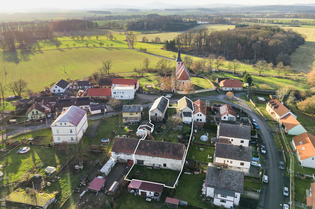 Naproti rodinnému domu se nachází stavba bývalého chléva s jedním nadzemním podlažím a podkrovím. Objekt je v dobrém stavu, průběžně udržovaný a aktuálně slouží jako sklad a zázemí pro zvířata. V zadní části pozemku stojí stodola, jejíž součástí je vestavěná garáž a několik menších skladových prostor. Předmětem prodeje jsou však pouze dvě třetiny této stavby, jelikož část přesahující na sousední pozemek je ve vlastnictví souseda. Stodola je vnitřně rozdělena příčkou a zároveň slouží jako průchod na zbývající část zahrady. Součástí prodeje je dále také garáž, umístěná uprostřed zahrady na hranici pozemku.