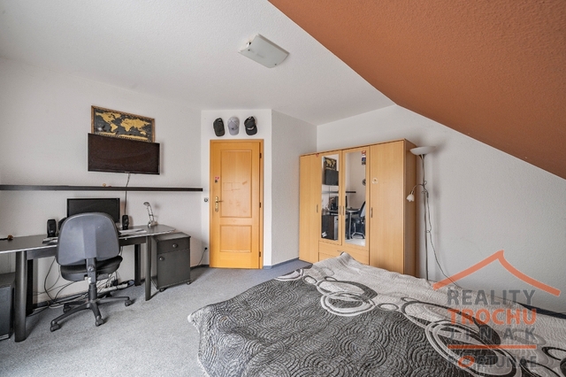 Nabízíme k prodeji rodinný dům typu dřevostavba o dispozici 5+kk, nacházející se v klidné části obce Hradec Králové, v ulici Trávní, místní části Slezské Předměstí. Tento samostatný patrový objekt o zastavěné ploše 70 m² a užitné ploše 115 m² nabízí komfortní bydlení s pěti pokoji. Dispozice: 1.NP - Obývací pokoj, kuchyň, ložnice, chodba, technická místnost, koupelna (sprchový kout) s WC, komora. Podkroví - 3x ložnice, koupelna (vana) s WC, chodba, schodiště, komora Půda - menší úložný prostor. Dům kolaudovaný v roce 2004 je ve velmi dobrém stavu a splňuje nároky moderního bydlení. Vytápění je zajištěno ústředním topením elektrokotlem. Na pozemku se nachází vrtaná studna, jejíž voda může být využita pro zalévání zahrady. Celková plocha parcely činí 456 m², na zahradě je umístěn zahradní domek s pergolou. Parkování je možné přímo na pozemku nebo u domu. Dostupnost je zajištěna prostřednictvím silnice a městské hromadné dopravy, což umožňuje snadný a rychlý přístup do centra města a dalších oblastí. Dům je napojen na veřejnou kanalizaci a vodovod, HUP. Tato nemovitost je ideální volbou pro ty, kteří hledají klidné bydlení v blízkosti městských služeb a zároveň ocení výhody soukromí. V blízkosti se nachází veškerá občanská vybavenost. Náš hypoteční specialista Vám připraví nabídku financování podle Vašich představ. V případě zájmu o prohlídku nás neváhejte kontaktovat.