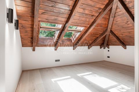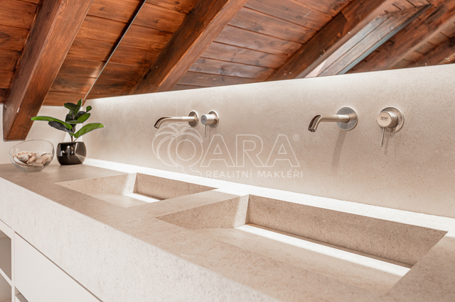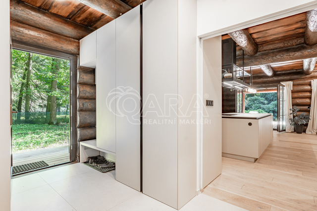 Hledáte dům, který má charakter, prostor a klid? Tady je. Novostavba srubu z roku 2024, energetická třída B, velkorysý lesní pozemek 4 830 m², 100 m² terasa a absolutní soukromí mimo hlavní komunikaci. Kolaudováno jako rodinný dům s číslem popisným. Co rozhoduje • 4+kk, 156 m² (176m2) užitné plochy • Hlavní obytný prostor 64 m² • Terasa 100 m² z evropského modřínu (příprava na venkovní kuchyň) • Oplocený pozemek s duby • Energetická třída B • Tepelné čerpadlo + podlahové topení v celém domě • Kompletně dokončeno firmou, žádná svépomoc Interiér bez kompromisů Přízemí • Vstupní hala s vestavbami na míru a velkoformátovou dlažbou Atlas Concorde 120×120 • Obytný prostor s kuchyní na míru, ostrůvkem a spotřebiči Smeg a Samsung • Designová digestoř Faber T-Shelf • Krb M-design Luna Diamond 1300H • Koupelna se sprchou + samostatné WC • Komora a technická místnost Patro • 2 ložnice (19 m² každá) • Otevřené atrium 27 m² – pracovna nebo možnost třetí ložnice • Koupelna s vanou Kaldewei 200×100 cm Masivní smrkové trámy byly po výstavbě ponechány k přirozenému seschnutí, dokončení probíhalo až následně podle architektonického návrhu. Výsledkem je stabilní, kvalitní konstrukce bez zkratkových řešení. Technologie • Tepelné čerpadlo Vaillant (vzduch–voda), zásobník 300 l • Podlahové topení Rehau v obou podlažích • Komín Schiedel • Alarm Jablotron + příprava na kamery • Městský vodovod + vlastní studna • ČOV Hellstein STMH-5 • Pálená keramická krytina Pozemek • Oplocený lesní pozemek 4 830 m² • Odborně prořezané vzrostlé duby • Zahrada s rododendrony, magnoliemi a okrasnými dřevinami • Ohniště, příjezdová cesta, dřevník Žádná záplavová oblast. Klid. Soukromí. Les. Lokalita Kersko je dlouhodobě vyhledávaná rezidenční oblast s atmosférou lesa a zároveň rychlou dostupností: • Praha – 20 min • Lysá nad Labem – 10 min • Poděbrady – 20 min V okolí přírodní park, golf, tenis, restaurace i kavárny. Tato nemovitost není víkendová chata. Je to plnohodnotný rodinný dům pro klienta, který chce prostor, kvalitu a klid – bez kompromisů. Pro detailní informace a osobní prohlídku mě kontaktujte.