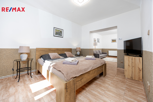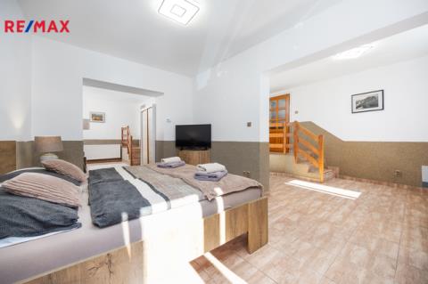 Vstupní brána do Národního parku České Švýcarsko — malebná pohraniční obec zaměřená na cestovní ruch na soutoku Labe a Kamenice s nezaměnitelnou atmosférou v každém ročním období. Vítejte v ikonickém Hřensku. Komfortní bydlení, podnikání v srdci turistické destinace, nebo kombinace obojího? Tento dvoupodlažní dům v centru Hřenska nabízí jedinečnou příležitost spojit vlastní bydlení s podnikáním a stabilním výnosem z pronájmu apartmánu. Navíc lze v domě vybudovat až tři další apartmány, čímž se výrazně navyšuje investiční potenciál. Dům disponuje dvěma nadzemními podlažími o celkové užitné ploše 336 m², půdou s potenciálem obytné vestavby, střešní terasou, malou zahrádkou a parkovacím stáním. Výměry ploch: Celková podlahová plocha: 357 m² Celková užitná plocha: 336 m² Celková velikost pozemku: 236 m² 1. nadzemní podlaží: útulný apartmán, komerční a skladové prostory, samostatné WC a technické zázemí. 2. nadzemní podlaží: kuchyň s jídelnou, obývací pokoj, dvě ložnice, koupelna, samostatné WC, pracovna, prádelna a úložné prostory. Součástí domu je také prostorná půda se vstupem na střešní terasu a zahrádku za domem. Dům je plně vybavený. Okna: dvojskla ve všech obytných místnostech s jižní orientací. Stav: po rekonstrukci — fasáda, střešní krytina, podlahové krytiny. Vytápění: centrální domovní kotel na pelety Eko Scroll V7; elektrický kotel Protherm Ray 14 KE. TUV: Dražice OKCE 200 NTR/HV Větrání: pasivní větrání s přípravou pro centrální rekuperaci. Zabezpečení: alarm a čidla pohybu v zádveří. Náklady na vytápění: 2 083 Kč/měs. Náklady na elektřinu: 2 945 Kč/měs. Zaujal vás potenciál této nemovitosti? Neváhejte mě kontaktovat — nemovitost Vám rád osobně představím.