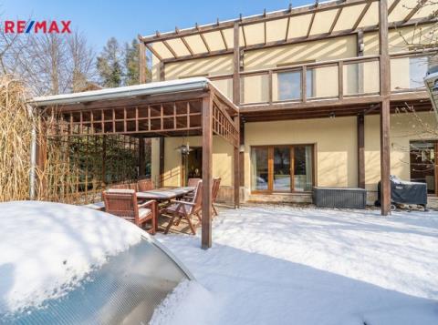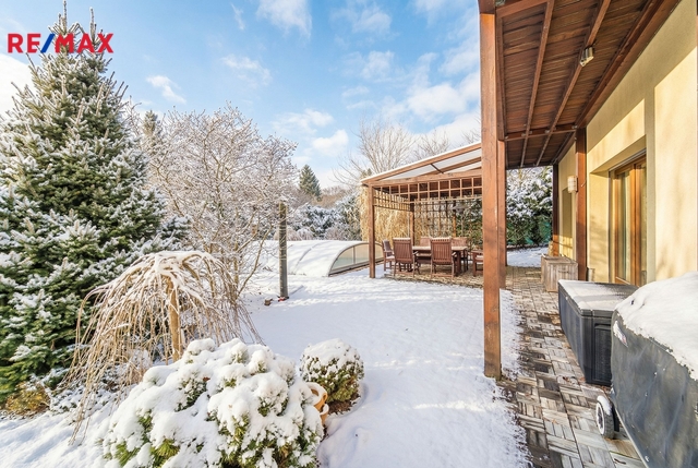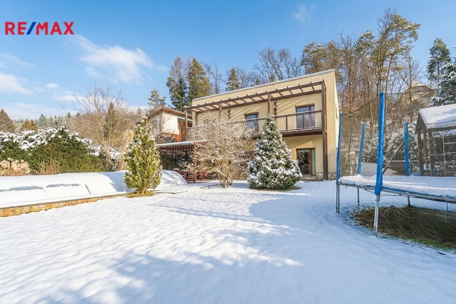 Hledáte místo, kde vaše děti vyrostou v sousedství přírody, a vy přitom neztratíte kvalitní spojení s Prahou? Vítejte v Hrusicích, malebné obci v Posázaví a rodišti Josefa Lady. Exkluzivně nabízíme nadstandardní rodinný dům dispozice 5+1 (220 m²), který byl navržen s důrazem na prostor, společně strávený čas i soukromí jednotlivých členů rodiny. Proč si tento dům vaše rodina zamiluje? • Společné chvíle u krbu a na terase: Vaše rodina bude trávit společné chvíle u jídelního stolu v obývacím pokoji s krbem. Za hezkého počasí si můžete obytný prostor rozšířit o navazující terasu s posezením pod pergolou. • Zahrada jako z pohádky: Na rozlehlé, vzrostlé zahradě čeká na děti herní koutek, tajná zákoutí pod stromy a večerní opékání buřtů u ohniště. • Koupací sezóna od jara do podzimu: Bazén se slanou vodou a protiproudem je díky zastřešení a tepelnému čerpadlu v provozu od jara do podzimu. Zatímco si děti hrají ve vodě, vy můžete odpočívat vedle bazénu na terase pod pergolou. • Domácí wellness: Po náročném dni v práci můžete relaxovat nebo po zimní procházce vás zahřeje finská sauna pro celou rodinu. • Bezpečí a klid: Dům stojí na konci klidné ulice. Žádný provoz, jen ticho a šumění blízkého lesa a potůčku. Dům je navíc vybaven zabezpečovacím systémem a elektrickými roletami pro váš klidný spánek. Dům je rozdělen na klidovou a společenskou zónu: • Horní podlaží (vstupní): Tři prostorné ložnice, z nichž každá má vstup na balkon s výhledem do zahrady. Hlavní ložnice disponuje vlastní koupelnou a šatnou. Dětské pokoje mají vlastní koupelnu – rána bez front v koupelně jsou zaručena. • Dolní podlaží (zahradní): Srdcem domu je velkorysý obývací pokoj s jídelnou a kuchyní, odkud plynule vyjdete na terasu a k bazénu. Najdete zde i pracovnu (ideální pro home office) a zmíněnou saunu. Kvalita a technologie: Dům je postaven z poctivých materiálů (zdivo Porotherm, zateplení, dřevěná okna s trojskly, podlahy z masivního dřeva). Vytápění plynovým kondenzačního kotlem přes podlahové radiátory v pokojích a podlahové topení v kuchyni a koupelnách. Zavlažování zahrady z vlastní vrtané studny a jímky na dešťovou vodu. Prostorná dvougaráž a další 3 parkovací místa na pozemku. Hrusice a sousední Senohraby jsou rájem pro aktivní rodiny. • Vše při ruce: Školka, škola i zdravotní středisko jsou v docházkové vzdálenosti. • Volný čas: Cyklostezky a trasy "Mikešovy cesty" začínají hned u domu. K řece Sázavě dojedete na kole za 5 minut. V zimě najdete upravené běžkařské stopy 1,5 km od domu nebo zajedete na sjezdovku do 6 km vzdáleného lyžařského areálu Šibeniční vrch. • Dostupnost: Vlakem ze Senohrab (10 min pěšky od domu) jste v centru Prahy za 40 minut. Autem na dálnici D1 za pár minut. • Restaurace a další služby: Pokud rádi navštěvujete restaurace, najdete v okolí různé podniky a dále hotel SEN se skvělým saunovým světem. Přijďte se podívat na místo, které se stane šťastným domovem pro Vaši rodinu. Těšíme se na vás na prohlídce!