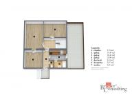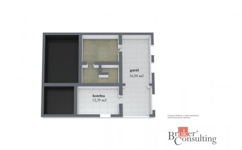 Dům je postavený z cihel se sedlovou střechou, je napojen na veřejný vodovod, kanalizace, elektřinu, na hranici pozemku se nachází plyn. Dům na přízemím (65 m2) s dispozicí 3+1, nabízí tři bytné pokoje o velikosti 18,5 m2, 12,9 m2 a 11,5 m2, kuchyň 5,4 m2 s přímím vstupem na terasu, samostatné WC (1,2 m2), koupelnu (3 m2) a chodbu se zádveřím (6 m2), v patře je prostorné podkroví vybízející k půdní vestavbě, dům je podsklepený s dílnou, garáží a sklepem, který poskytuje dostatek úložného prostoru.