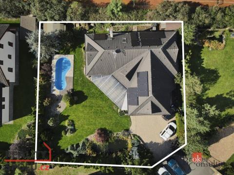 Rodinný dům 6+1, 280 m² na pozemku 981 m² – Hýskov Na Viničkách Nabízíme k prodeji prostorný a moderní dvoupodlažní rodinný dům o dispozici 6+1 s užitnou plochou 280 m² a zastavěnou plochou 162 m². Dům se nachází v klidné části obce Hýskov, na pěkném pozemku o výměře 981 m² s rozsáhlou zastřešenou terasou o velikosti 45 m². Vybavení a dispozice: * Přízemí: Prostorný obývací pokoj propojený s kuchyní a jídelnou, technická místnost, dvě pracovny, koupelna s toaletou a vstupní hala. * Patro: Tři neprůchozí ložnice o velikosti 25–30 m², každá se samostatnou šatnou, prostorná koupelna s vanou a střešním oknem, samostatná toaleta. * Moderní kuchyň s prémiovými spotřebiči a dostatkem úložných prostor. * Komfortní vyhřívané podlahy po celém domě zajišťují příjemné bydlení. Zahrada a exteriér: * Přímý vstup z obývacího pokoje na prostornou terasu vhodnou k posezení, relaxaci či grilování. * Zahrada se vzrostlými stromy, solárním bazénem se slanou vodou, dvěma zahradními domky a romantickým jezírkem. * Moderní fotovoltaická elektrárna instalovaná v roce 2023 pro snížení provozních nákladů. * Retenční nádrže na dešťovou vodu slouží k ekologické závlaze zahrady. Další benefity: * Energetická náročnost budovy třídy B – nízké náklady na vytápění a provoz. * Parkování přímo na pozemku s dostatečným místem pro minimálně 3 vozidla. * Asfaltová příjezdová komunikace pro bezproblémový přístup. * Situace domu nabízí kombinaci klidného bydlení u přírody s dostupností veškerých služeb. Lokalita a dostupnost: * Klidná rezidenční část obce Hýskov, ideální pro rodinný život. * Výborná dostupnost do Prahy a Berouna – jen 6 km na dálnici D5 a 20 minut do metra Zličín. * Veškerá občanská vybavenost v dosahu – školy, školky, obchody, pošta, restaurace, sportovní a rekreační možnosti v okolí. Tento dům je perfektní volbou pro rodinu hledající prostorné, moderní a ekologicky šetrné bydlení v klidné lokalitě s výbornou dopravní dostupností. Pro více informací nebo domluvení osobní prohlídky volejte nonstop linku. Pomohu vám i s financováním hypotékou.