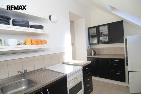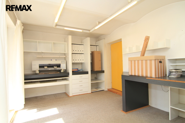 V suterénu domu nečekaně najdete příjemný pokoj využívaný jako pracovna či ateliér. Je to ideální místo pro práci nebo tvoření, kde vás nebude rušit běžný chod domácnosti. I odsud je možné vyjít ven na menší dvorek a spojovací uličku určenou pouze pěším. Dále je zde místnost s bojlerem a kotelna, kde byl původní kotel na tuhá paliva vyměněn za kotel elektrický. A dále je tu samostatná uhelna a spíž.