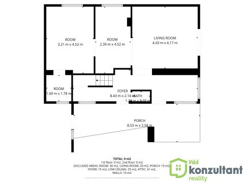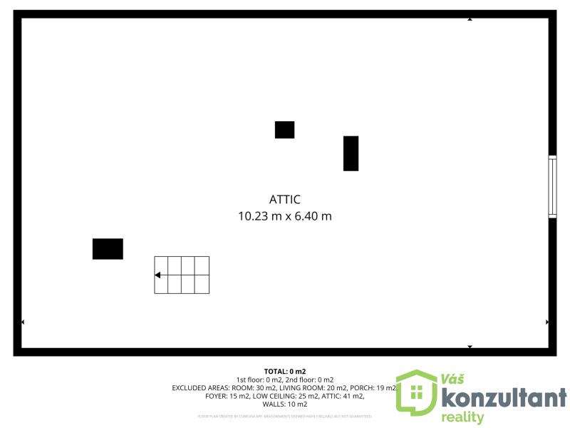 Podkroví je aktuálně využitelné jako sklad. Prostor lze dodatečně snížit sádrokartonem a zateplit, aby se nevytápěl nevyužitý objem. Elektroinstalace je zde rovněž připravena.