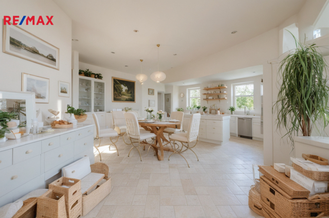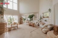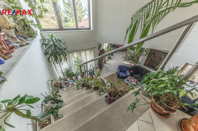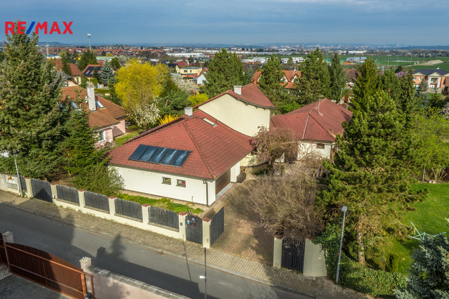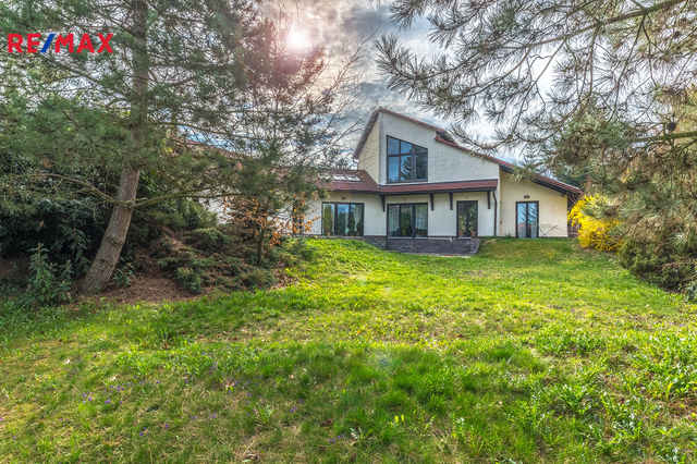 Ve výhradním zastoupení majitele nabízím luxusní přízemní rodinný dům - bungalov umístěný v rezidenční čtvrti obce Jesenice. Objekt je přízemní, z jedné třetiny podsklepený s přístupem z venkovní strany, s vestavěnou garáží pro dvě auta (další dvě parkovací místa jsou na pozemku). Na zahradě je malý zahradní přístavek na nářadí a zahradní techniku. Střecha sedlová s různými výškami. Dům může být užíván i jako dvougenerační. Dům je umístěný na parcele o celkové výměře 1326 m2. Přístup do domu je z jihovýchodní strany od asfaltové příjezdové komunikace. Na prostorné zádveří navazuje šatna. Domu dominuje členitý obývací pokoj, který z jedné strany přechází do jídelny s kuchyňským koutem a z druhé strany se otvírá do prostoru s krbem. V obývacím pokoji je otevřené schodiště do prvního patra, ve kterém má majitel pracovnu. Je zde možné i relaxovat a ve večerních hodinách se kochat krásným výhledem na rozsvícenou Prahu . Za obývacím pokojem je soukromá část majitelů - ložnice, prostorná koupelna a šatna. Propojovací chodbou lze vstoupit do druhé oddělené části domu se dvěma ložnicemi a koupelnou. Tato část má také vlastní vchod, proto ji lze užívat zcela samostatně, např. jako ordinaci nebo kancelář. Ze všech místností domu je přímý výstup do zahrady, u obývacího pokoje je navíc terasa. Dům je vytápěný tepelným čerpadlem země - voda. V celém domě je podlahové topení. Elektrickou energii dům čerpá z fotovoltaiky - panely umístěné na střeše. Přebytek energie je prodáván do sítě. Ohřev teplé vody zajišťuje dalších 5 panelů. Zásobování vodou je z obecního vodovodu, odpad je sveden do kanalizace. Závlaha zahrady je z vlastního vrtu. Pokud by budoucí majitel přesto chtěl využít plyn, plynová přípojka je na hranici pozemku. V domě je rozvedený centrální vysavač. U východu z obývacího pokoje do zahrady je příprava na zimní zahradu (není dokončená) včetně zavedené vody, elektřiny a centrálního vysavače. Internet - optické vlákno. Na dům navazuje garáž pro dvě auta. za garáží je ještě hobby místnost. Uspořádání domu Vám upřesní přiložený půdorys. Energetický štítek připravujeme. Dům uspokojí každého, kdo hledá velké a vzdušné prostory, klid a dobrou dopravní dostupnost. Pro více informací nebo žádost o prohlídku kontaktujte prosím makléřku. Prodávající si vyhrazuje právo vybrat kupujícího na základě jím zvolených kritérií.