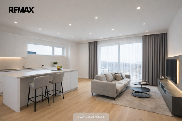 V CENĚ JIŽ ZAHRNUTO: podlahové krytiny, interiérové dveře, kompletní dokončení koupelen včetně obkladů, dlažby a sanity.