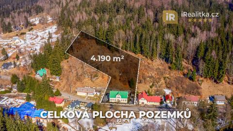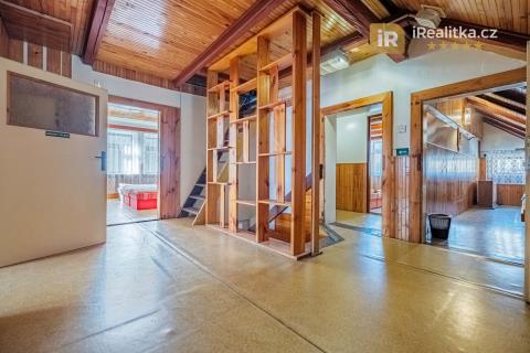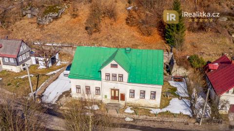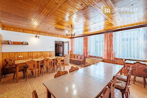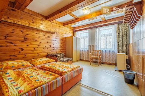 Tato nemovitost je v současné chvíli v rezervaci. Prodej velmi zajímavé investiční nemovitosti, která se nachází v Jizerských horách v obci Josefův Důl – Antonínov (okr. Jablonec nad Nisou). Jedná se o dvoupodlažní objekt s půdou, jehož dispoziční uspořádání je následující. V přízemí nalezneme velkou společenskou místnost, jídelnu, kuchyň, stylové posezení, lyžárnu, 2 technické místnosti a vstupní halu. Dále pak také sociální zařízení, které tvoří 2 koupelny se sprchovým koutem, 4 toalety a 2 umývárny. Celkově Vám přízemí nabídne velkorysých 180 m2 užitné plochy. Z prostorné chodby se po schodišti dostaneme do druhého podlaží, které obsahuje celkem 7 pokojů s celkovou kapacitou 25 lůžek. Toto podlaží Vám nabídne dalších 125 m2. Dohromady Vám tak obě podlaží nabídnou úctyhodných 305 m2. V podkroví domu se pak nachází ještě prostorná půda o celkové podlahové ploše 77 m2. Součástí prodeje je také velký svažitý pozemek rozléhající se za domem. Celková plocha obou prodávaných pozemků má pak výměru 4.190 m2. Dům je v dobrém technickém stavu a můžete ho tak ihned začít využívat. Nemovitost je napojena na elektřinu a veřejný vodovod, odpad je zajištěn septikem se zemním filtrem. O vytápění se postarají akumulační kamna a elektrické žebříkové radiátory v koupelnách. Ohřev vody zajišťují elektrické bojlery. Koupi domu je možné pojmout také investičně a jednotlivé pokoje pronajímat. Je zde navíc vydané stále platné stavební povolení na rekonstrukci objektu a dle územního plánu je možné zde vybudovat až 6 bytových jednotek. Dům tedy můžete přeměnit na luxusní apartmány a naplno tak využít jeho investiční potenciál. Antonínov je součástí obce Josefův Důl a tedy velmi oblíbené a vyhledávané destinace Jizerských hor, kam se jezdí ubytovávat velké množství turistů. Ti sem jezdí navštěvovat nejen místní vyhlášené skiareály (např. Skiareál Bukovka), ale také vodní nádrž Josefův Důl, vodopády na řece Jedlové a další krásy okolní přírody. Jedná se tedy o možnost koupit perspektivní nemovitost na velmi zajímavém místě, tak si tuto příležitost nenechte utéct. Pro více informací či prohlídku této nemovitosti mě neváhejte kdykoli kontaktovat. Nemovitost je možné financovat hypotečním úvěrem, který Vám pomůžeme zdarma zajistit, a to s nejvýhodnějšími podmínkami na trhu. Číslo zakázky: 935335