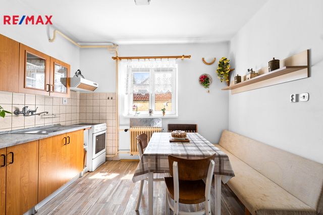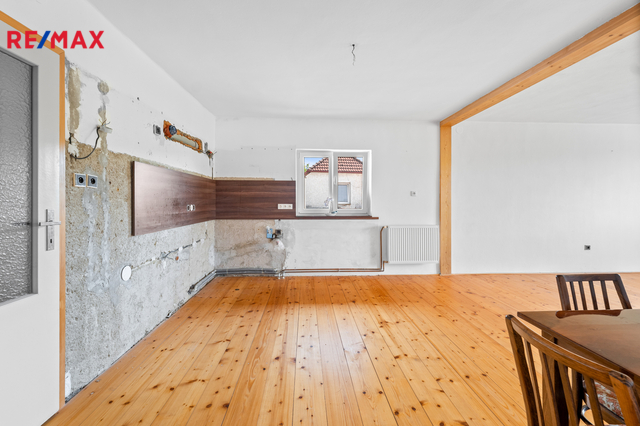 1. podlaží – dispozice 3+1, je částečně zařízený, vybavený kuchyňskou linkou, sprchovým koutem, vanou, samostatným wc, komorou a dalším nábytkem, tento byt je ihned obyvatelný