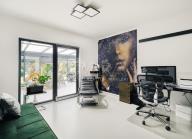 Zprostředkujeme Vám ke koupi moderní, reprezentativní, designový, maximálně funkční vilový bungalov (dřevostavba) s obytnou plochou 145 m2, se zimní a architektonickou zahradou, situovaný v nejprestižnější části Kamenice – Štiřín, v klidové zóně u zámku a golfového hřiště. Tento výjimečný dům je vystavěn na pozemku o celkové ploše 1 205 m2 a byl kolaudován v roce 2023. Dominantou stavby je originální ručně malovaná fasáda od akademického malíře, která domu dodává naprosto jedinečný charakter a činí jej skutečným designovým originálem. Parcela je bez přímých sousedů, vzrostlé stromy vytvářejí přirozené soukromí i mikroklima – ráno vás probudí ticho a zeleň, večer si užíváte jemně nasvícenou zahradu místo pohledů do cizích oken.