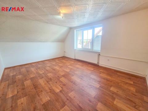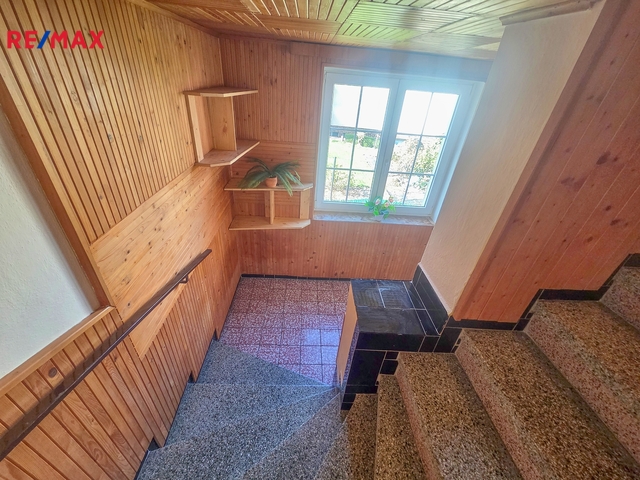 V přízemí rodinného domu se nachází předsíň (9 m2) ze které se vchází do bytu v přízemí o dispozici 3+1; na schodiště k druhému bytu v patře nebo do suterénu domu.