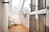 Dispoziční řešení bytové jednotky 4 + kk o užitné ploše 160 m2 se rozprostírá v prvním a druhém nadzemním podlaží. 1.NP se sestává ze vstupního zádveří a chodby 12 m2, kuchyně s jídelním koutem propojené s obývacím pokojem 44 m2, ložnice 13 m2, koupelny 5 m2 s prostorem pro prádelnu, dvou skladů - šaten, WC a technické místností 9 m2. Do 2.NP se vstupuje po dřevěném schodišti a najdeme zde dva prostorné pokoje, koupelnu, WC, sklad či šatnu a pracovní kout. Orientační půdorys jednotlivých místností najdete ve fotodokumentaci.