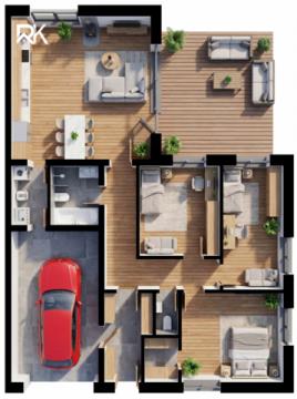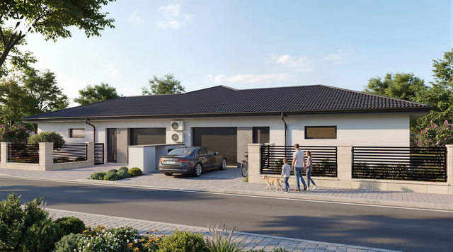 Nabízíme novostavbu rodinného domu o dispozici 4+kk v rámci projektu RD Káranice, který zahrnuje celkem 38 rodinných domů (dvojdomy i samostatné domy) s různými velikostmi pozemků a variantami dispozic. Jedná se o levou polovinu dvojdomu s vlastním pozemkem o velikosti cca 544–746 m². Dům má podlahovou plochu 153,7 m² a je navržen pro praktické a komfortní rodinné bydlení. Dominantou domu je obývací pokoj s kuchyní o velikosti 33,86 m² se vstupem na terasu a zahradu. Dále dům nabízí ložnici 16,45 m² a dva samostatné pokoje 12,29 m² a 12,25 m². Součástí dispozice je: koupelna 4,44 m² samostatné WC 1,48 m² technická místnost 3,49 m² chodba 11,09 m² zádveří 7,06 m² garáž 21,75 m² Dům je realizován jako zděná stavba z tvárnic Ytong s důrazem na dlouhou životnost a kvalitní provedení. Technologické řešení zahrnuje: tepelné čerpadlo vzduch–voda podlahové vytápění v celém domě fotovoltaickou elektrárnu přípravu na klimatizaci ve všech obytných místnostech Dům splňuje energetickou třídu B, což zajišťuje nízké provozní náklady. Standard zahrnuje kompletně dokončené koupelny, podlahy dle výběru a upravený pozemek včetně terasy, parkovacích ploch a oplocení. Kuchyňská linka není součástí. Projekt RD Káranice nabízí klidné rodinné bydlení v přírodě s výbornou dostupností do Hradce Králové i Pardubic. Pro více informací neváhejte kontaktovat makléře.
