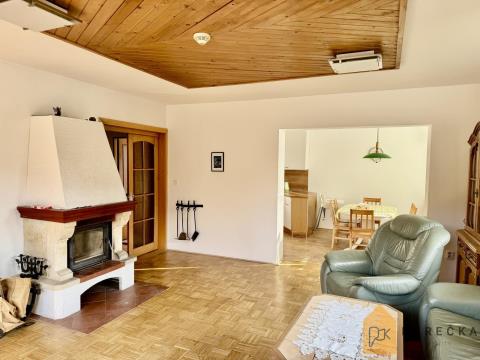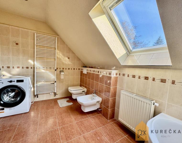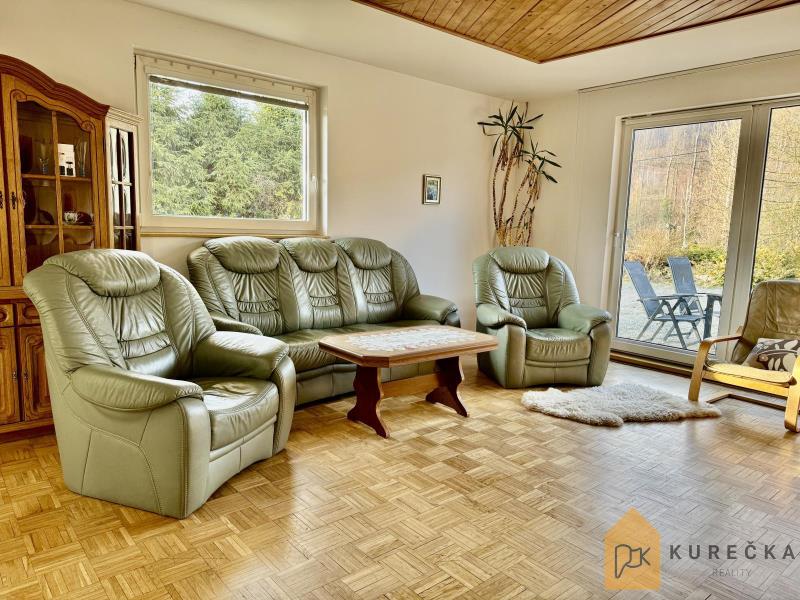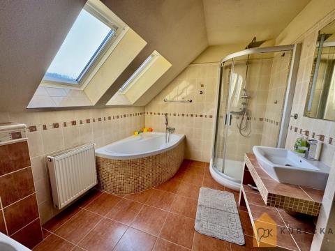 Nabízíme exkluzivně prodej rodinného domu (5+1)) s užitnou plochou 195 m2, OV, Karlovice, okr. Bruntál. V 1NP je pokoj, WC, kuchyně s linkou a elektrosporákem a varnou deskou, myčkou a rozlehlou jídelnou. Vedle kuchyně je obývací pokoj s krbovými kamny na TP a vstupem na venkovní terasu. V 2NP se nachází tři pokoje se vstupem na balkon a rozlehlou lodžii spolu s velkou koupelnou se sprchovacím koutem, rohovou vanou, WC a bidetem. Celková výměra 1NP je 76 m2 a 2NP také 76 m2. Ve sklepě 73 m2 je instalována technologie tepelného čerpadla, domácí vodárna a několik místností. Kolem domu je oplocená zahrada 1778 m2 s pergolou, saunou ve tvaru sudu, ohřívací kádí a uzákem spolu s ohraničeným prostorem pro psa. Celková výměra pozemku s RD činí 1922 m2. Před domem je vlastní kopaná studna a také přípojka na vodovod a podtlakovou kanalizaci spolu rozměrnými ovládanými vraty umožňující vjezd a parkování vozidel. Garáž v RD 17 m2 má elektroovládání vrat. V blízkosti jsou služby, mateřská, základní škola, sportovní a kulturní zázemí, výborná dostupnost autem, vlakem či autobusem. RD je přístupný z veřejné komunikace. Je to hezké místo obklopené lesy vhodné pro trvalé ale i rekreační bydlení. V blízkosti najdete město Vrbno pod Pradědem, lázně Karlova Studánka, kde je to již kousek na horu Praděd. Přijďte se podívat a v zimě si sebou vezměte lyže !