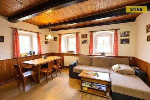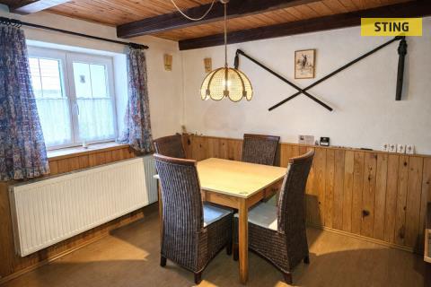 Nabízíme k prodeji rodinný dům v obci Kladky v okrese Prostějov, který je v současnosti využíván jako celoročně obyvatelná chalupa. Nemovitost se nachází na okraji obce v klidném prostředí kopcovité krajiny a nabízí dostatek soukromí i prostoru. Dům je rozdělen na dvě obytné části. V původní části se nachází kuchyně s jídelnou, koupelna se sprchovým koutem i vanou, obývací pokoj v rustikálním stylu s krbem a ložnice. Novější přístavba nabízí prostorný obytný společenský prostor s krbem, ze kterého vede schodiště do podkroví, kde jsou umístěny dvě útulné ložnice a menší koupelna s vanou a WC. Součástí této části je také krytá terasa. Na obytnou část navazuje prostorná garáž. Dům je postaven ze smíšeného zdiva, má sedlovou střechu s betonovou krytinou a je napojen na elektřinu, plyn i obecní vodovod. Vytápění je řešeno plynovým kotlem s možností přepnutí na kotel na tuhá paliva. K domu náleží pozemek o celkové výměře 1 778 m², který nabízí široké možnosti využití. Nachází se zde pergola pro venkovní posezení, bazén a také tenisový kurt, který je v současnosti neudržovaný a nabízí tak potenciál k obnově nebo jinému využití. Obec Kladky leží v příjemné kopcovité krajině a je vhodná jak pro klidné bydlení, tak rekreaci. V blízkosti se nachází i sjezdovka, což ocení zejména milovníci zimních sportů. Nemovitost je vhodná jak k trvalému bydlení, tak k rekreačnímu využití, případně i pro vícegenerační bydlení. Pro více informací nebo domluvení prohlídky nás neváhejte kontaktovat. Do konce dubna 2026 nabízíme prostřednictvím našeho partnera úrokové sazby od 4,69 % p.a. Více informací Vám sdělí náš specialista na prohlídce.
