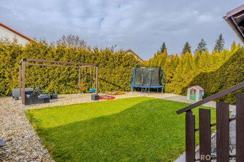 Pozemek o velikosti 467 m² (zahrada 289 m²) nabízí příjemné zázemí pro odpočinek i dětské hry a přitom zůstává nenáročný na údržbu.