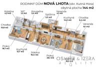 Nabízíme k prodeji rodinný dům situovaný v malebné obci Nová Lhota (část obce Kluky), okres Kutná Hora. Tento přízemní cihlový dům nabízí nejen ideální bydlení pro rodinu, ale také kouzlo venkovského života na samém okraji obce. Dům má užitnou plochou 144 m², což zaručuje dostatek místa pro všechny členy domácnosti i návštěvy. Zastavěná plocha činí 157 m² a celková plocha pozemku je 1496 m², což poskytuje dostatek prostoru pro zahradní úpravy, zahradničení či relaxaci. Interiér domu je tvořen obytnými místnostmi, které čekají na kreativní duši, jež je promění na útulné prostory. Dům je téměř v původním stavu k rekonstrukci a je ideální pro ty, kteří ocení původní rysy a chtějí si vytvořit domov podle svých představ. Na pozemku se nachází garáž a hospodářská budova, kterou je možné využít jako dílnu nebo na uskladnění zahradní techniky. Dům je připojen na elektřinu. Je zde přivedena i telefonní linka umožňující připojení internetu. Nově je na pozemek přivedena přípojka vodovodu a kanalizace. Na pozemku je také vlastní studna a jímka na splaškovou vodu na které je dům doposud připojen. Vytápění je zajištěno ústředním topením s kotlem na topný olej. Zásobníky topného oleje 4 x 800 l jsou uloženy ve sklepení na pozemku. V některých místnostech jsou i kamna. Velkou devizou domu je zahrada která ho obklopuje z přední i zadní strany. Na zahradě najdete řadu vzrostlých ovocných i okrasných stromů. Na prostorné zahradě je dostatek místa pro pěstování zeleniny i okrasné květinové záhony. Obec Nová Lhota (Kluky) leží v krásné přírodní lokalitě, 10 minut do centra města Čáslav, 15 minut od centra Kutné Hory a cca 1 hodinu od Prahy. Dobré spojení a přijatelná vzdálenost od Prahy umožňuje i poměrně snadné (příležitostné) dojíždění za prací i zábavou do metropole. Dům byl v posledních letech využíván částečně k trvalému bydlení a částečně jako rekreační objekt. V domě proto byly vytvořeny dvě samostatné bytové jednotky, každá s vlastním vchodem. Dům je v interiéru propojen, je tedy možno využívat jako společný obytný prostor i jako dvě jednotky. Půdní prostor není momentálně využíván, ale je přístupný. Dopřejte si komfort bydlení v krásné a klidné lokalitě, kde se snoubí tradice s možnostmi moderního života. V případě zájmu o prohlídku nás neváhejte kontaktovat. Alexandra a Marek