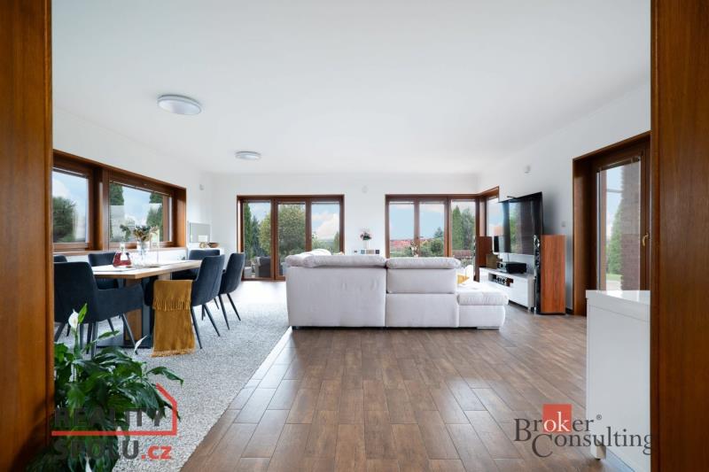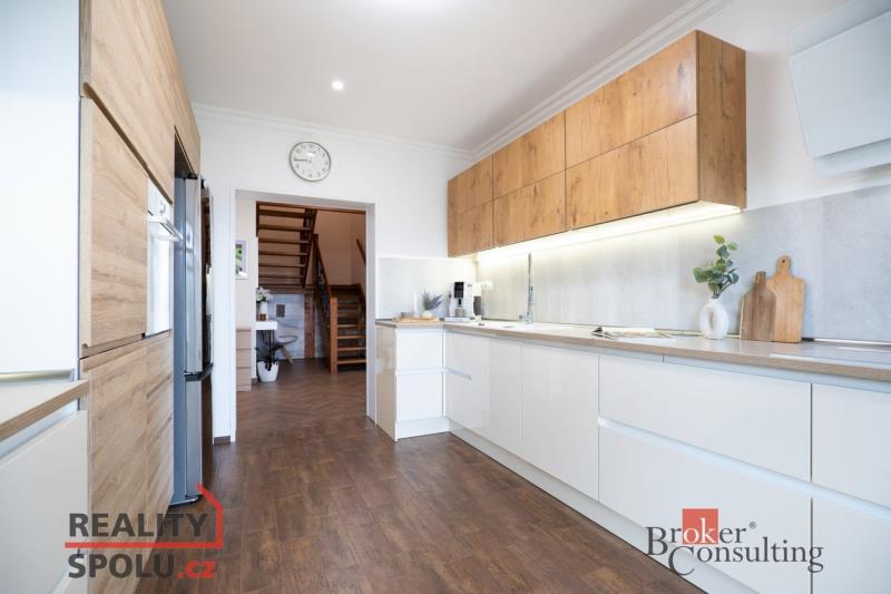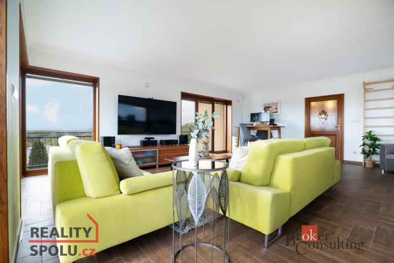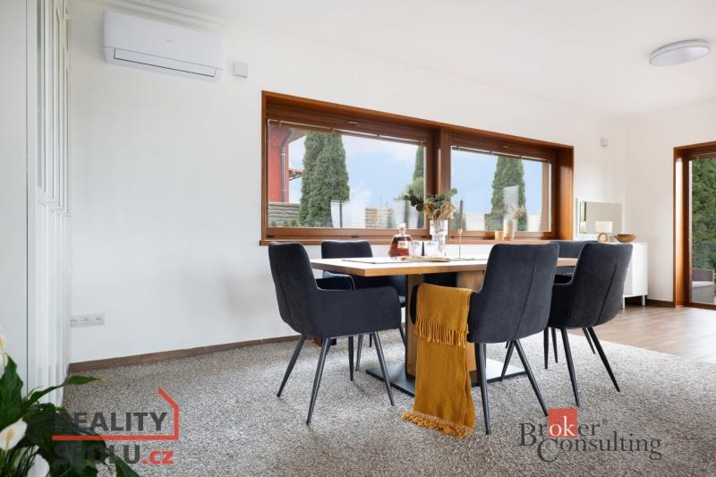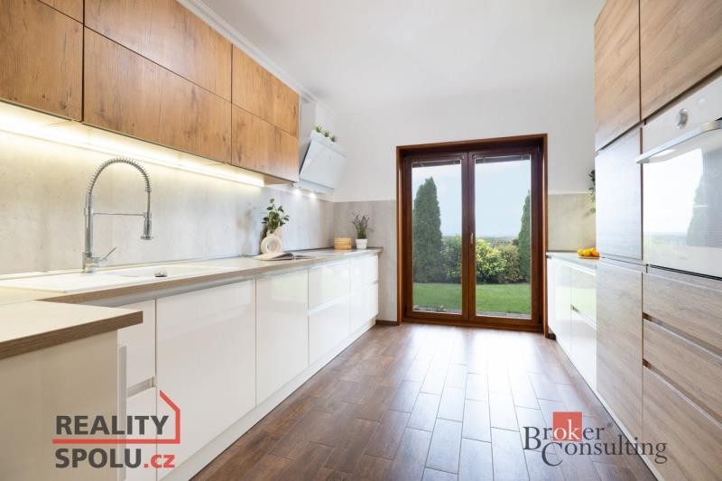 Prodej moderního rodinného domu, Hoření Vinice – Kly u Mělníka Nabízíme ke koupi nadstandardní rodinný dům v klidné a vyhledávané části obce Kly (okres Mělník). Lokalita spojuje klid venkovského bydlení s dobrou dostupností – Mělník 5 minut, Praha 25 minut. Okolí nabízí krásnou přírodu a ideální prostředí pro rodinný život. Dům nabízí zcela výjimečný výhled na okolí. Otevřený výhled na Neratovice, Prahu, Kralupy, Říp s Českým středohořím až po mělnický zámek a vinici. Popis nemovitosti: Dispozice: 5+2 Užitná plocha: 288 m² Rok výstavby: 2014 Dům je navržen s důrazem na nízké provozní náklady a komfortní bydlení. Dominantou je prostorný obývací pokoj s kuchyní a přímým vstupem na terasu, dále tři ložnice, dvě koupelny, technická místnost a úložné prostory. Ve 2NP je další kuchyně a prostorný pokoj. Technologie a vybavení: Tepelné čerpadlo země–voda s podlahovým vytápěním Fotovoltaická elektrárna 9,9 kWp (22 panelů, plocha 47,7 m²) Izolační trojskla, kvalitní cihlové zdivo a zateplení EPS 100mm LED osvětlení v celém domě Energeticky mimořádně úsporná budova – PENB třída A Energetické parametry: Měrná potřeba tepla na vytápění: 71 kWh/m².rok Celková dodaná energie: 117 kWh/m².rok Primární energie: 17 kWh/m².rok Díky kombinaci tepelného čerpadla a fotovoltaiky má dům mimořádně nízké provozní náklady. Tento dům nabízí: - nadstandardní prostory pro rodinu (i vícegenerační) - moderní a ekologické technologie - nízké náklady na bydlení - atraktivní a klidnou lokalitu s dobrou dostupností do Prahy - garáž pro 3 automobily Budeme se na vás těšit při prohlídce a rádi vám pomůžeme zajistit i vhodné financování.
