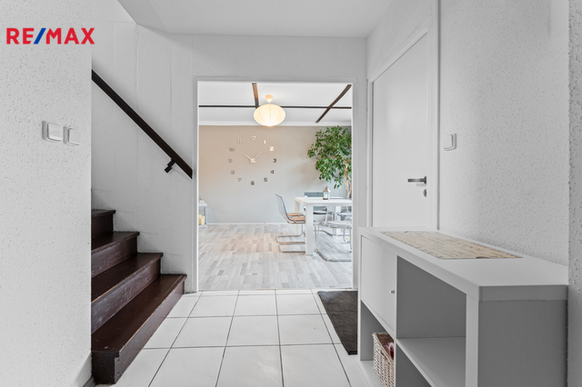 Exkluzivně nabízíme k prodeji třípodlažní řadový rodinný dům na adrese Družstevní 144, Kněževes, který se nachází v klidné rezidenční části obce s výbornou dostupností do Prahy. Dům je součástí pozemku o evidované výměře 131 m², vedeného jako zastavěná plocha a nádvoří. Dům má tři nadzemní podlaží, přičemž každé z nich disponuje podlahovou plochou přibližně 54 m². Celková vnitřní plocha domu činí cca 162 m², přičemž další přidanou hodnotou jsou čtyři lodžie, každá o velikosti cca 6 m². Dispozice: 1. podlaží: Garáž a technické zázemí domu. V tomto podlaží se nachází plynový kotel, bojler a další technické místnosti vhodné pro skladování nebo dílnu. 2. podlaží: Hlavní obytná část domu tvořená obývacím pokojem, kuchyní, technickou místností sloužící jako spíž a samostatným WC. Podlaží je doplněno lodžiemi z obou stran domu. (jedna z nich slouží jako vstup do domu) 3. podlaží: Klidová část určená k bydlení, kde se nachází tři ložnice, koupelna s toaletou a technická místnost. Z tohoto podlaží je dále přístup na půdu, která poskytuje další úložný prostor. Stejně jako v nižších podlažích jsou zde lodžie na obou stranách domu. Rodinný dům lze využívat k trvalému bydlení či na investici a je v dobrém technickém stavu. Vytápění je zajištěno plynovým kotlem, ohřev teplé vody prostřednictvím bojleru. Energetická náročnost budovy je ve zpracování, proto je v souladu se zákonem uváděna energetická třída G. Obec Kněževes je dlouhodobě vyhledávanou lokalitou díky své poloze v těsné blízkosti Prahy a zároveň klidnému charakteru bydlení. V obci je k dispozici základní občanská vybavenost včetně školy, školky, obchodů a služeb. Významnou výhodou je rovněž blízkost Letiště Václava Havla. Výborná dopravní dostupnost je zajištěna jak automobilem, tak autobusovými linkami PID s návazností na metro. Rychlé napojení na Pražský okruh umožňuje pohodlné spojení do centra Prahy i dalších částí Středočeského kraje. Pokud máte zájem o prohlídku, prosím vyplňte formulář pod inzerátem a budeme vás kontaktovat s možnými termíny. V případě většího zájmu bude nemovitost prodána nejlepší nabídce. Pozn.: Uvedené výměry jsou orientační.