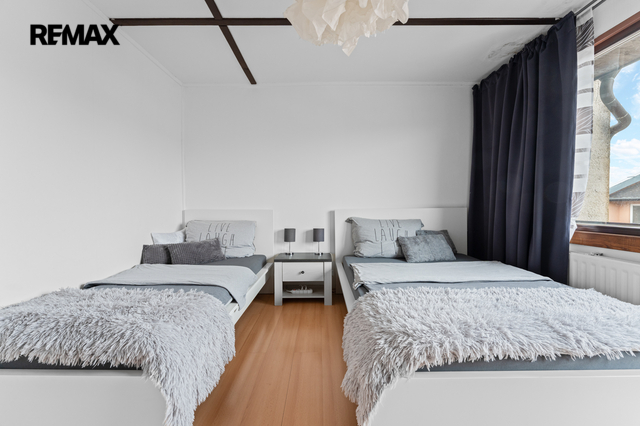 Exkluzivně nabízíme k prodeji třípodlažní řadový rodinný dům na adrese Družstevní 144, Kněževes, který se nachází v klidné rezidenční části obce s výbornou dostupností do Prahy. Dům je součástí pozemku o evidované výměře 131 m², vedeného jako zastavěná plocha a nádvoří. Dům má tři nadzemní podlaží, přičemž každé z nich disponuje podlahovou plochou přibližně 54 m². Celková vnitřní plocha domu činí cca 162 m², přičemž další přidanou hodnotou jsou čtyři lodžie, každá o velikosti cca 6 m². Dispozice: 1. podlaží: Garáž a technické zázemí domu. V tomto podlaží se nachází plynový kotel, bojler a další technické místnosti vhodné pro skladování nebo dílnu. 2. podlaží: Hlavní obytná část domu tvořená obývacím pokojem, kuchyní, technickou místností sloužící jako spíž a samostatným WC. Podlaží je doplněno lodžiemi z obou stran domu. (jedna z nich slouží jako vstup do domu) 3. podlaží: Klidová část určená k bydlení, kde se nachází tři ložnice, koupelna s toaletou a technická místnost. Z tohoto podlaží je dále přístup na půdu, která poskytuje další úložný prostor. Stejně jako v nižších podlažích jsou zde lodžie na obou stranách domu. Rodinný dům lze využívat k trvalému bydlení či na investici a je v dobrém technickém stavu. Vytápění je zajištěno plynovým kotlem, ohřev teplé vody prostřednictvím bojleru. Energetická náročnost budovy je ve zpracování, proto je v souladu se zákonem uváděna energetická třída G. Obec Kněževes je dlouhodobě vyhledávanou lokalitou díky své poloze v těsné blízkosti Prahy a zároveň klidnému charakteru bydlení. V obci je k dispozici základní občanská vybavenost včetně školy, školky, obchodů a služeb. Významnou výhodou je rovněž blízkost Letiště Václava Havla. Výborná dopravní dostupnost je zajištěna jak automobilem, tak autobusovými linkami PID s návazností na metro. Rychlé napojení na Pražský okruh umožňuje pohodlné spojení do centra Prahy i dalších částí Středočeského kraje. Pokud máte zájem o prohlídku, prosím vyplňte formulář pod inzerátem a budeme vás kontaktovat s možnými termíny. V případě většího zájmu bude nemovitost prodána nejlepší nabídce. Pozn.: Uvedené výměry jsou orientační. Prodávající si vyhrazuje právo vybrat kupujícího na základě jím zvolených kritérií.