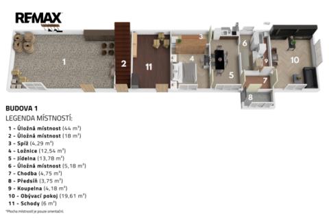 Celkem 415 m² užitné plochy s možností výrazného rozšíření – ideální pro vícegenerační rodinu, investora nebo projekt s ubytovací kapacitou.