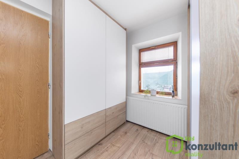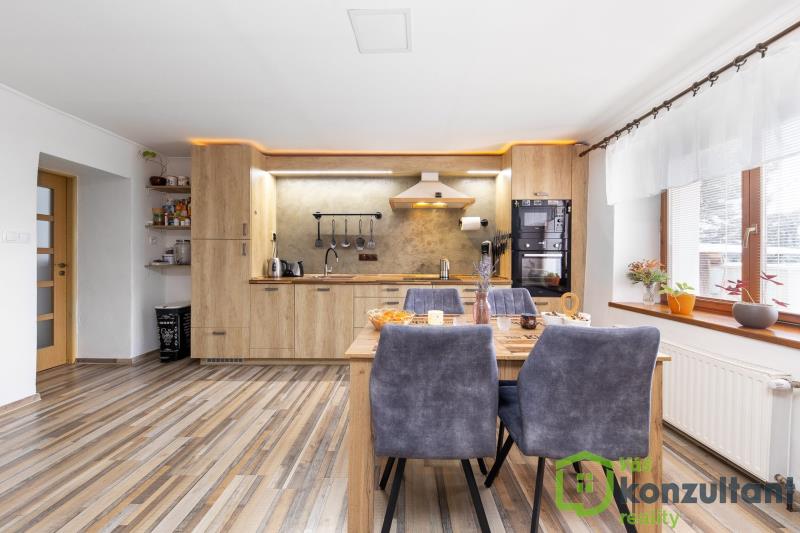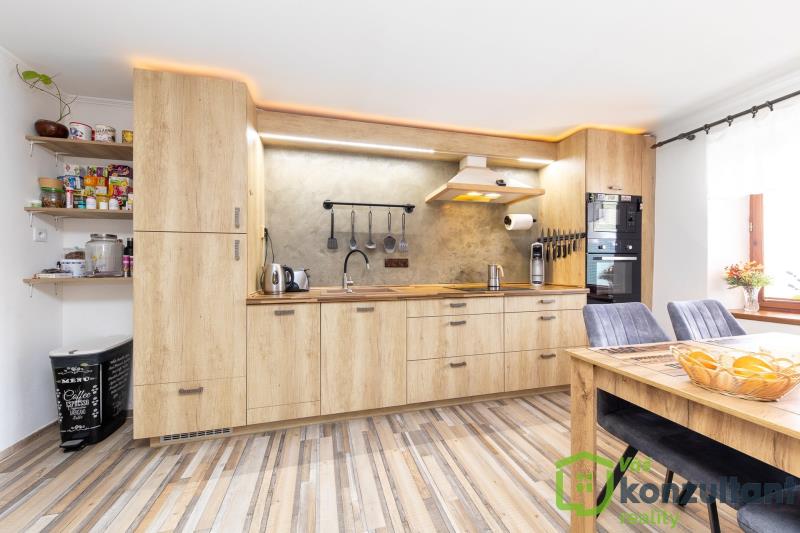 Prodej rodinného domu 4+kk po rekonstrukci, uzavřený dvůr, parkování, Koněšín – u Dalešické přehrady Nabízíme k prodeji rodinný dům o dispozici 4+kk, který prošel rozsáhlou rekonstrukcí a je připraven k okamžitému nastěhování. Dům se nachází v obci Koněšín, v klidné a vyhledávané lokalitě v blízkosti Dalešické přehrady, ideální pro bydlení i rekreaci. Dispozice a vybavení V přízemí domu se nachází: prostorný obývací pokoj s kuchyní a jídelním koutem v jednom otevřeném prostoru v obývacím pokoji jsou krbová kamna jako další, velmi příjemný zdroj vytápění ložnice s novým nábytkem, který zůstává součástí prodeje velká vstupní hala koupelna se sprchovým koutem technická místnost a WC praktická komora cca 13 m² s dostatkem úložného prostoru V 1. patře domu se nachází dva samostatné, oddělené pokoje, vhodné jako dětské pokoje, pracovna nebo pokoj pro hosty. Dvůr, soukromí a parkování Dům má uzavřený dvůr, který poskytuje dostatek soukromí a klidu. Na dvoře je: částečně vybavená venkovní kuchyně připravený prostor pro vířivku několik hospodářských budov – ideální jako dílna nebo sklad nově vybudované kryté parkovací stání pro dvě auta Technický stav – bez starostí nové rozvody elektřiny v mědi, vody a odpadů kompletní odizolování domu proti vlhkosti (drenáže, nopová fólie, sanační omítky) dům je suchý a velmi dobře udržovaný napojení na veřejnou kanalizaci plynový kotel cca 3 roky starý, pravidelně servisovaný internet rozveden do obytných místností možnost připojení optického internetu Lokalita – Koněšín Koněšín nabízí klidné bydlení obklopené přírodou s dobrou dostupností do Třebíče, Velkého Meziříčí i Brna. Velkým benefitem je blízkost Dalešické přehrady, vzdálené jen několik minut jízdy – ideální pro koupání, rybaření, cyklistiku a relax. Ideální nemovitost pro trvalé bydlení, rekreační využití i jako investice. Pro více informací nebo domluvení prohlídky mě neváhejte kontaktovat.