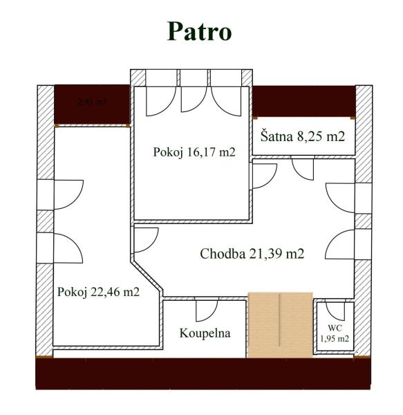 Nabízíme k prodeji prostorný rodinný dům o dispozici 4+1 v klidné obci Koroužné. K domu náleží rozlehlý pozemek o celkové výměře 1 405 m² a navíc samostatná zahrada o velikosti 1 159 m² situovaná před domem. Dům byl postaven v roce 1931 a v roce 1999 prošel kompletní rekonstrukcí. Konstrukce je zděná (cihla), severní strana je zateplena. Objekt je napojen na všechny inženýrské sítě, odpady jsou svedeny do jímky na vyvážení a k dispozici je také vlastní studna. Celý dům je kompletně podsklepen. Dispozice domu Sklepní prostor: Prostorný sklep nabízí dostatek úložných prostor a jednu stylovou místnost využívanou jako vinný sklep s posezením. 1. nadzemní podlaží: • Zastřešená veranda • Chodba (4,62 m²) • Samostatná toaleta (2,64 m²) • Kuchyň (15,54 m²) • Spíž • Koupelna se sprchovým koutem (4,68 m²) • Obývací pokoj (19,6 m²) • Ložnice (16 m²) 2. nadzemní podlaží: • Hala (21,39 m²) • Samostatná toaleta (1,95 m²) • Šatna (8,25 m²) • Ložnice (16,17 m²) • Druhá ložnice (22,46 m²) – možnost rozdělení na dvě samostatné místnosti • Koupelna s vanou Další stavby a vybavení Na pozemku se nachází samostatná budova s letní kuchyní a dílnou a dřevěná kůlna. Součástí prodeje je další sklad a zastřešený bazén, který nabízí komfortní využití během teplých měsíců. Lokalita – Koroužné Obec Koroužné se nachází v malebné krajině na pomezí Vysočiny a Žďárských vrchů. Jedná se o velmi klidnou lokalitu s příjemnou atmosférou vesnického života, zároveň však s dobrou dostupností větších měst — Bystřice nad Pernštejnem je vzdálena přibližně 10 minut jízdy, Nové Město na Moravě cca 20 minut. Občanská vybavenost Přímo v obci se nachází základní občanská vybavenost – obchod, obecní úřad a možnosti sportovního vyžití. Kompletní infrastruktura (školy, školky, lékaři, supermarkety, služby) je dostupná v nedaleké Bystřici nad Pernštejnem. Možnosti volného času a výletů Okolí nabízí široké možnosti pro milovníky přírody, cyklistiky a pěší turistiky. • Vodní nádrž Vír – ideální pro koupání, rybaření a vodní sporty • Hrad Pernštejn – jeden z nejzachovalejších gotických hradů v ČR • Vírská ferrata – atraktivní zážitek pro milovníky lezení • Žďárské vrchy – přírodní park s množstvím turistických tras • Jedovnické rybníky a lesy – vhodné pro houbaře i rodinné procházky Lokalita je vhodná jak pro trvalé bydlení, tak i pro rekreační využití.