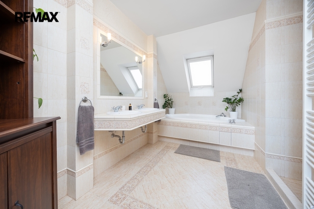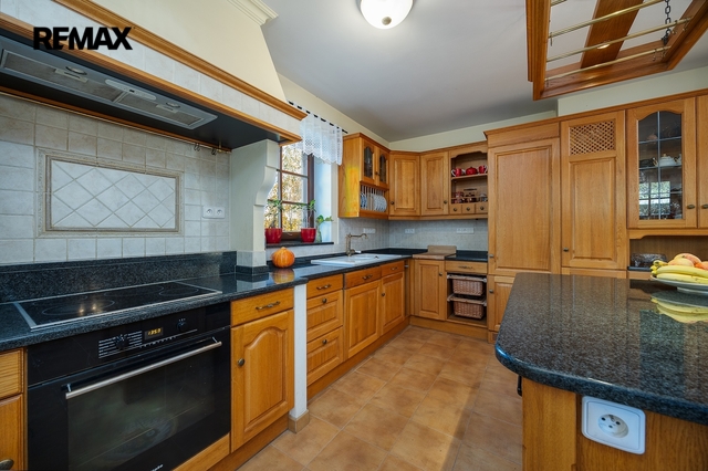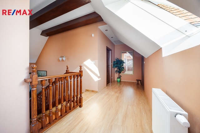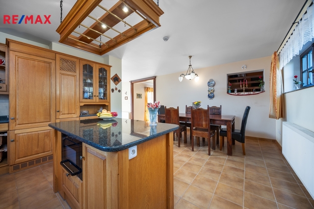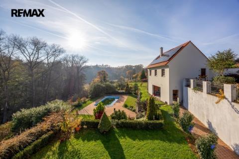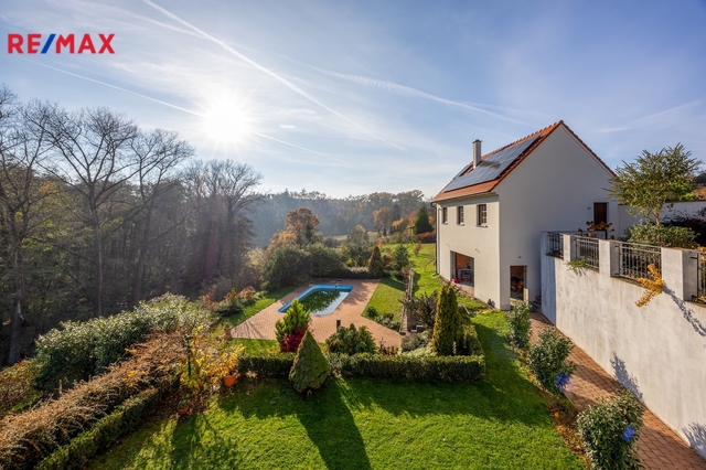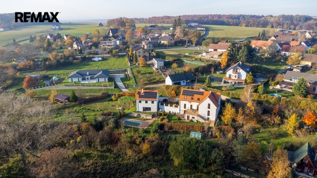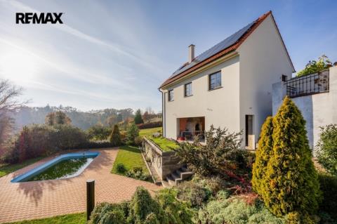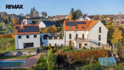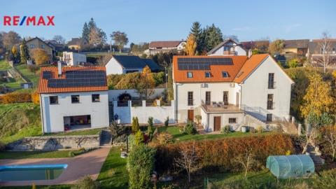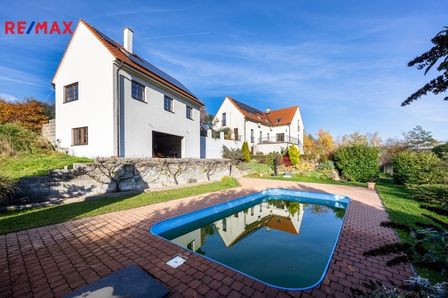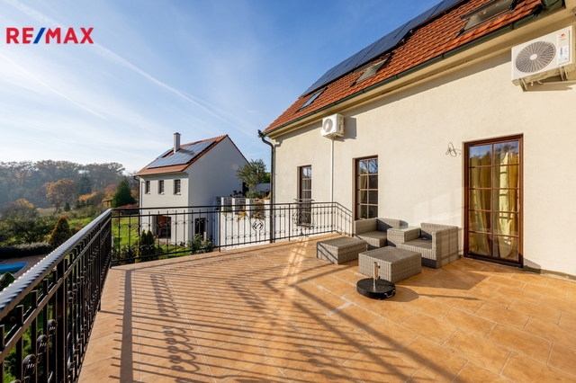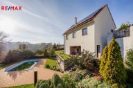 Součástí domu je velká terasa s nádherným výhledem, bazén a vedlejší stavba – v přízemí budoucí venkovní posezení s krbem, v patře prostorná garáž. Vytápění zajišťuje kotel na pelety, ohřev vody elektrický bojler, na střeše jsou solární panely s bateriovým úložištěm (2 roky staré). Dům má eurookna, alarm a v podkroví klimatizaci. Přístup je zajištěn z obecní komunikace.