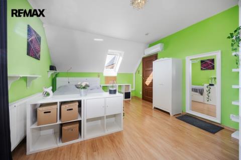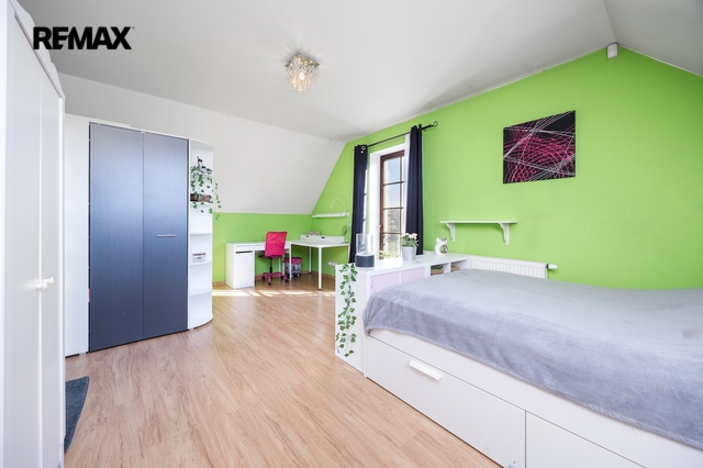 - Velký pozemek se samostatným vjezdem, který umožňuje případné rozdělení parcely.