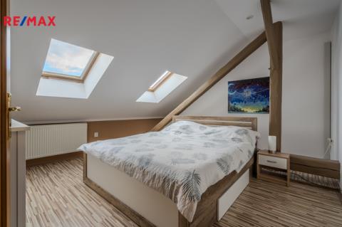 Proběhla rekonstrukce bytu ve 2.NP, původní byt 3+1 s příslušenstvím je nyní 2+1, 2x hala, WC, koupelna, šatna a balkon s nádherným výhledem do zahrady (128,03 + balkon 9,61m2).