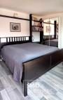 V přízemí na zakázku dřevěná borovicová okna + dveře. Horní patra - střešní okna Velux + dřevěná Eurookna, jen v ložnici(2.patro) je velké plastové dvoukřídlové francouzské okno s východem na terasu.