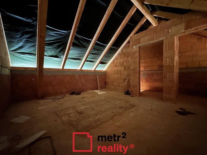 Ve výhradním zastoupení prodávajícího pro vás máme nabídku novostavby rodinného domu v obci Kozlany u Vyškova. Jedná se o jednopodlažní nepodsklepený rodinný dům s obytným podkrovím, s jednou bytovou jednotkou o dispozici 5+kk (142,20 m2) a garáží pro 2 osobní vozidla. Hlavní část domu sestává ze vstupního zádveří, koupelny, velkého obývacího pokoje s kuchyňským koutem, šatny/pracovny a ze schodiště vedoucího do obytného podkroví, pod nímž je umístěna menší technická místnost. V podkroví je počítáno se čtyřmi samostatnými ložnicemi a s další koupelnou. Na dům navazuje velká dvougaráž (35 m2) s vraty širokými 4 m a se zázemím, nad kterou se nachází překrásný půdní prostor (31,70 m2) s možností budoucího rozšíření obytných místností, případně se nabízí možnost pro spojení bydlení a podnikání. Tato část nemovitosti je ideální například pro služby jako je kadeřnictví, kosmetika, nehtové studio, masáže či jako kanceláře, vzorková prodejna aj. Stavební úpravou je možné propojení hlavní části domu s půdním prostorem nad garáží, což bude možné pouze před finálním dokončením domu. Výměra pozemku 298 m2. Přestože je dům samostatně stojící, je po dohodě s vlastníkem sousední nemovitosti situován v těsné blízkosti sousední stavby. Mezi domy je prostor umožňující průchod a přístup k fasádám obou domů. Před nemovitostí je dostatek parkovací plochy, a to min. pro tři osobní automobily. Budoucí vlastník může prostor před domem využít také jako předzahrádku, přestože se jedná o obecní pozemek. Hlavní vstup do domu je směrem od cesty, druhý pak z dvorní části nemovitosti. Garáž není stavebně propojena s domem. Za domem je počítáno s posezením, opěrnou zídkou a vjezdem do garáže. Dům je osazen plastovými okny s trojskly, v obývacím pokoji je osazen HS portál se vstupem na terasu. Jako střešní krytina byla použita pálená keramická taška, krov je dřevěný, stropy železobetonové monolitické. Nosné zdivo z tvárnic Heluz tl. 300 mm, příčky Porotherm 140 mm. Do obytného podkroví vede pohodlné betonové schodiště s odpočinkovou podestou a oknem přispívajícím k prosvětlení prostoru. Dům je napojen na veškeré inženýrské sítě. Součástí dokončeného domu bude: teplovodní podlahové vytápění, zdroj plynový kotel Immergas, zásobník TÚV Dražice 125 l. Podlahy, schodiště vinyl (click systém) a interiérové dveře s obložkami, obé od DKP market, výběr dekoru při včasné rezervaci. Dlažba, obklady, sanita SIKO koupelny. Garážová vrata Trido. Podrobnější informace ke zvolenému standardu na dotaz u makléře RK. Za domem je travnaté prostranství, vedle pozemku vede boční, obecní, slepá komunikace označena značkou zóna 30. Tím, že je dům situován jako krajní v řadě a díky značné travnaté ploše za ním, působí velmi vzdušným dojmem. Malebná obec Kozlany má novou obecní komunikaci a je díky představitelům obce, kteří o ni s láskou pečují, velmi příjemná pro žití. Jde o v mnoha ohledech výjimečnou nabídku, která si zaslouží vaši pozornost. Energetická třída B.