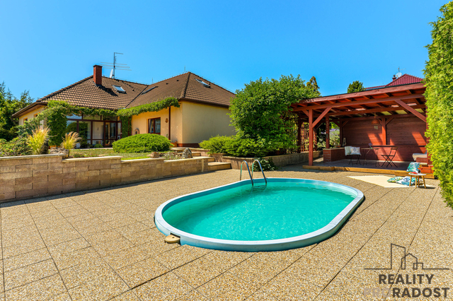 Pozemek o rozloze 2.154 m² je kompletně oplocený, s udržovanou okrasnou zahradou. K dispozici jsou 2 parkovací stání na vlastním pozemku. Zahrada je jedním z největších pokladů této nemovitosti. Kompletně oplocený pozemek nabízí útočiště pro rodinné aktivity, relaxaci pod pergolou, ale zejména krásně upravenou zahradu s bazénem. Bazén o velikosti 16 m² (5×3,5 m) poskytuje ideální osvěžení během letních dnů. K tomu je k dispozici skleník pro pěstování vlastní zeleniny, což oceníte zejména v dnešní době, kdy je čerstvost a kvalita potravin prioritou. Zahrada má vlastní studnu, takže zalévání je snadné a bez nákladů.